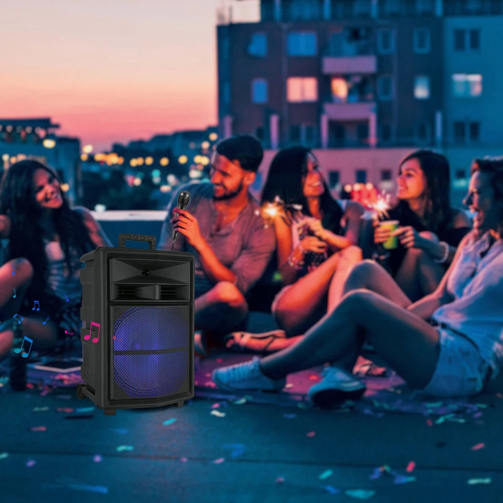 $ 8.88in Dual Woofer Bluetooth Party Speaker with FM and Heavy Bass