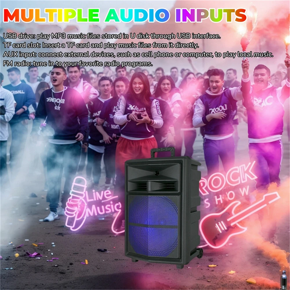 15" Portable Party Bluetooth Speaker Heavy Bass Sound Stand Mic LED Lights TWS Features: Dominant 15-inch Sound & 10,000W Peak Power: Command any space with the sheer force of a massive 15-inch driver and thunderous 10,000W peak power. Experience deep, resonant bass down to 50Hz and crystal-clear highs for truly immersive audio. Party-Ready Powerhouse with Mic: Unleash the ultimate party starter! This powerhouse comes complete with a wired microphone for karaoke or hosting, delivering 1-2 hours of max-volume performance and recharging in just 3-5 hours. (Stand options available). Versatile Connectivity & Control: Seamlessly stream via Bluetooth (10m+ range) or play MP3/WAV files directly from USB/TF cards. Take full command effortlessly with the included remote control for convenience. Engineered for Impact (50Hz-20kHz): Precision-tuned for powerful sound reproduction across a wide 50Hz-20kHz frequency range. Feel the deep bass punch and enjoy detailed audio clarity whether indoors or out. Robust Portable Design (Black ABS): Built tough for the party life. Housed in durable black ABS plastic, this speaker combines formidable 15-inch performance with essential portability for events anywhere. Specification: Type: Bluetooth Speaker Model : MPX-1505/MPX-1505SM Color : Black (ABS housing) Speaker Size : 15-inch Peak Power : 10,000W Play Time : 1-2 hours at max volume Charge Time : 3-5 hours Input Voltage : DC 5V 1A Frequency Response : 50Hz-20kHz Connection Range : ≥10m (BT) Supported Formats : MP3/WAV (USB/TF) Package Included: 1 × 15-inch Bluetooth Speaker ( with/without stand ) 1 × Wired Microphone 1 × Remote Control 1 × English User Manual Shipping Payment Return & Refund policy Feedback Customer Support - Contact Shipping FREE SAME BUSINESS DAY MONDAY- FRIDAY SHIPPING FROM USA. All orders and payments received before 4PM EST (1PM PST) will be shipped the same business day. All other orders within 1 business day. No shipping on Weekends or US Public Holidays. No responsibility for any custom duty Shipping information will be updated when available. Payment We accept payment via PayPal. Use PayPal at checkout to pay with credit or debit. Immediate payment is required. Shipping will be arranged within 1 business day once payment is cleared. Return & Refund policy 1.We stand behind our items and offer 60 days warranty. All items are in new and working condition unless specified otherwise elsewhere in the description. 2.All Returns - defective or otherwise - MUST BE PREAUTHORIZED to guarantee refund or exchange. Please contact us to get an authorization and return address. 3.Buyer agrees to pay for the cost of re-shipment for undeliverable or wrong addresses. 4.Buyer is responsible for Return Postage as well as a 20% restocking fee if return/replacement is not a result of our mistake such as wrong item. 5.Replacement or Refund will be made upon receipt of the returned item. Please include tracking number so we can process ASAP. If you do not wish to wait for a replacement, please repurchase the item. 6.ALL REFUNDS will be processed via PayPal. Please double check via PayPal history and transaction for confirmation. PayPal will send it back to whatever you used to pay within 3-5 days. Feedback We strive to provide the best products and services. If anything about your transaction did not meet expectations, please CONTACT US and give us the opportunity to make things right. We are always here to help. Customer Support - Contact Please do not hesitate to CONTACT US. You can message 24/7 on eBay for all questions and inquiries. We will get back to you within 1-2 business days at the latest.