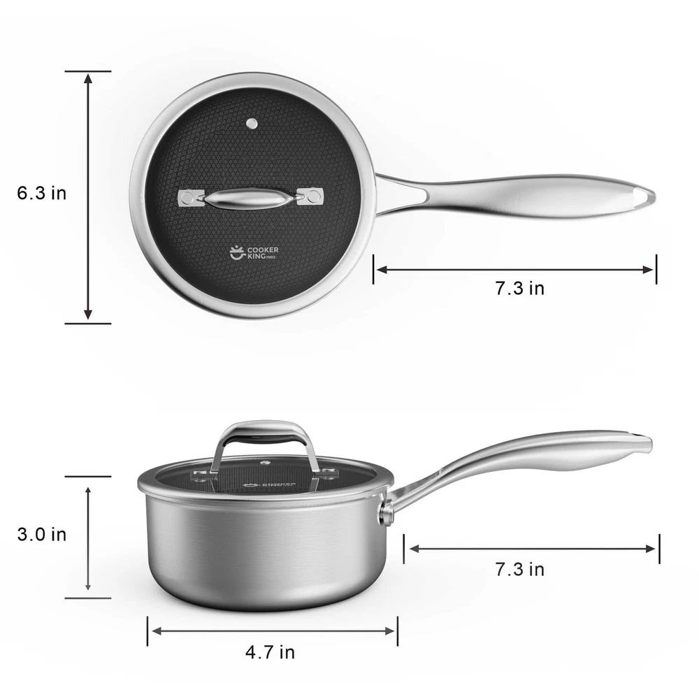 is a professional non stick cooking manufacturer. Brand: Include: 1.5qt Saucepan with Glass Lid Utensils:Stainless Steel Material: Stainless Steel Lid:Glass Lid Compatible Stoves: Suitable for all cookers, including induction Features: Non-toxic, Non-stick pasta pot is designed to provide years of cooking enjoyment, superior performance and low maintenance. Each piece is crafted to the highest standards of quality and durability. If you have any questions or concerns, please do not hesitate to contact us. We prioritise customer satisfaction and will promptly provide you with a solution to ensure your cooking experience remains enjoyable and seamless.Experience the difference today and elevate your culinary endeavours with our professional-grade non-stick cookware! 【Healthy Materials】: sauce pan specially constructed tri-ply food grade stainless steel for whole body with multi-clad construction. Laser-etched with our all-natural ceramic coating surface to deliver the searing power of stainless. 【Non-Stick & Easy to Clean】: The 1.5qt saucepan use all-natural ceramic coating do a good job in preventing food from sticking. Recommend hand washing the pot as it is effortless to clean also leanable with your dishwasher or steel wool pads. Every piece is scratch-resistant can be used metal shovel. 【Induction Pot】: Multi-clad construction avoids heat spots and distributes safe heat evenly, saving energy and time for cooking! Compatibility with induction suitable for any kitchen, gas, electric, and ceramic cooktops while being oven-safe up to 500°F. Note: Glass Lids are suitable for use up to 400°F. 【Stay-Cool Handle & Glass Lid】: The pot with long stainless steel handles fastened with stainless steel rivets not only provide a comfortable grip during cooking but also ensure extra strength & stability and stay cooler for longer. The saucepan with sturdy glass lid for easy food monitoring and sealing in heat and flavors for healthier, more flavorful meals. 【Service & Guarantee】: Each 3 Ply Stainless steel pot passes a strict multi-inspection process. If your have any qusetion please don't hesitate to reach out, and we will do our best to help with your worries.