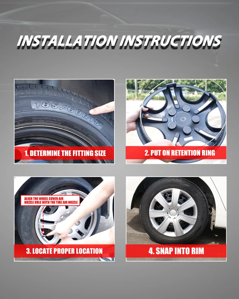 Home Payment Shipping Return Policy About Us Contact Us Feedback Title Other Car Refrigerator Front Bumper Rear Bumper Fender Flares Inner Fenders Side Steps Running Board A-Pillar Light Mount Brackets Headlights For Ford For Dodge For Chevrolet For Toyota For Mitsubishi Taillights For Chevrolet For Toyota For Ford For Jeep For Dodge For Honda For Nissan For Cadillac Fog Lights For Jeep For Dodge For Chrysler For Ford For Toyota For Chevrolet For Nissan For Lexus For GMC For Cadillac For BMW For Mercedes Benz LED Headlights For Ford For Dodge For Chevrolet For Toyota LED Taillights For Toyota For Chevrolet For Ford For Jeep For GMC For Honda For Cadillac LED Fog Lights For Toyota For Ford For Chevrolet For Mercedes Benz Jeep Headlights Tail Lights Fog Lights Refrigerator Bumper Fender Flares Inner Fenders A Pillar Light Mount Brackets Side Step More Chevrolet Headlights Tail Lights Fog Lights Refrigerator Bumper Ford Headlights Tail Lights Fog Lights Refrigerator Bumper Toyota Headlights Tail Lights Fog Lights Refrigerator Bumper Dodge Headlights Tail Lights Fog Lights Refrigerator Bumper GMC Headlights Tail Lights Fog Lights Refrigerator Bumper Wheel Covers Features ✔ PERFECT FIT: This wheel hub cap is specifically designed to perfectly fit for 15-inch wheels, ensuring a seamless match and enhanced aesthetics. It complements the overall design of the vehicle, elevating its visual appeal. ✔ HIGH-QUALITY MATERIAL: Constructed from high-quality materials, this wheel hub cap guarantees durability and longevity. It withstands various road conditions and environmental factors encountered during daily driving, maintaining its pristine condition. ✔ EASY INSTALLATION: Installing this wheel hub cap is a breeze and requires no specialized tools or modifications. It comes with a user-friendly system, allowing for a hassle-free installation process by following the provided instructions. ✔ PROTECTIVE FUNCTION: Besides its aesthetic appeal, this wheel hub cap serves as a protective barrier for the wheels. It prevents scratches and potential damage caused by stones, debris, or other objects, safeguarding the wheel's surface. ✔ AFTER-SALES SERVICE: If There Is a Loss of Product Parts, or Any Parts of The Problem, We Can Provide After-Sales Service, Please Contact Us on The Order Page. ️ Wheel Covers Specification ✔ Type: Hub caps ✔ Number in Pack: 4 ✔ Color: Silver ✔ Material: ABS ✔ Compatible Wheel Diameter: 15 in ✔ Finish: Glossy ✔ Installation Type: Snap-On ✔ Model: Universal Hubcap for Iron Wheels Wheel Covers Package ✔ 1 Set of 4 Hub caps and 4 retention rings Payment Delivery details Terms of sales About us Contact us Payment We accept PayPal, credit card , Apple Pay & Google Pay etc. Delivery details All items will be shipped within 1-3 business days after payment received, we will try our best to ship out as soon as we can, hope for your understanding. Please double confirm your address and contact information, which will help the delivery faster and more accurately. Note :buyers who purchase international products need to pay import tariffs!!! Terms of sales Professional installation is highly recommended. Any problem of the item please feel free to contact us first , please D o Not leave negative feedback before that, or simply return it within 60 Days in original condition. We will resolve it for you ASAP. About us Any questions please do not hesitate to contact us directly by eBay message . We will reply you within 24 hours asap, thanks for your understanding. Contact us Should you have any problem or require any further information please feel free to contact us . If you are satisfied with our product and service, please kindly leave us a positive feedback. On Jan 5, 2025 at 20:03:51 PST, seller added the following information: