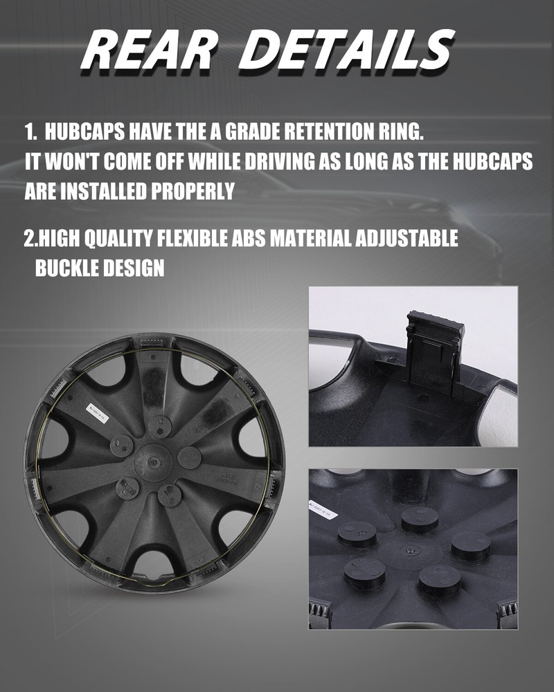 Store Categories Other Car Refrigerator Front Bumper Rear Bumper Fender Flares Inner Fenders Side Steps Running Board A-Pillar Light Mount Brackets Headlights Taillights Fog Lights LED Headlights LED Taillights LED Fog Lights Jeep Chevrolet Ford Toyota Dodge GMC Product Features ⚜ PERFECT FIT: This wheel hub cap is specifically designed to perfectly fit for 15-inch wheels, ensuring a seamless match and enhanced aesthetics. It complements the overall design of the vehicle, elevating its visual appeal. ⚜ HIGH-QUALITY MATERIAL: Constructed from high-quality materials, this wheel hub cap guarantees durability and longevity. It withstands various road conditions and environmental factors encountered during daily driving, maintaining its pristine condition. ⚜ EASY INSTALLATION: Installing this wheel hub cap is a breeze and requires no specialized tools or modifications. It comes with a user-friendly system, allowing for a hassle-free installation process by following the provided instructions. ⚜ PROTECTIVE FUNCTION: Besides its aesthetic appeal, this wheel hub cap serves as a protective barrier for the wheels. It prevents scratches and potential damage caused by stones, debris, or other objects, safeguarding the wheel's surface. ⚜ AFTER-SALES SERVICE: If There Is a Loss of Product Parts, or Any Parts of The Problem, We Can Provide After-Sales Service, Please Contact Us on The Order Page. Specificataion ⚜ Type: Hub caps ⚜ Number in Pack: 4 ⚜ Color: Silver ⚜ Material: ABS ⚜ Compatible Wheel Diameter: 15 in ⚜ Finish: Glossy ⚜ Installation Type: Snap-On ⚜ Model: Universal Hubcap for Iron Wheels Package List ⚜ 1 Set of 4 Hub caps and 4 retention rings Payment Delivery details Terms of sales About us Contact us Payment We accept PayPal, credit card , Apple Pay & Google Pay etc. Delivery details All items will be shipped within 1-3 business days after payment received, we will try our best to ship out as soon as we can, hope for your understanding. Please double confirm your address and contact information, which will help the delivery faster and more accurately. Note :buyers who purchase international products need to pay import tariffs!!! Terms of sales Professional installation is highly recommended. Any problem of the item please feel free to contact us first , please D o Not leave negative feedback before that, or simply return it within 60 Days in original condition. We will resolve it for you ASAP. About us Any questions please do not hesitate to contact us directly by eBay message . We will reply you within 24 hours asap, thanks for your understanding. Contact us Should you have any problem or require any further information please feel free to contact us . If you are satisfied with our product and service, please kindly leave us a positive feedback. Popular Categories
