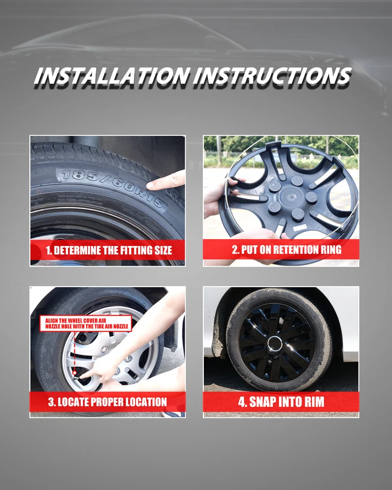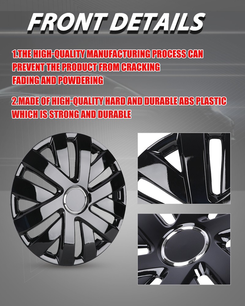 Store Categories Other Car Refrigerator Front Bumper Rear Bumper Fender Flares Inner Fenders Side Steps Running Board A-Pillar Light Mount Brackets Headlights Taillights Fog Lights LED Headlights LED Taillights LED Fog Lights Jeep Chevrolet Ford Toyota Dodge GMC Wheel Covers Features ✴ PERFECT FIT: This wheel hub cap is specifically designed to perfectly fit for 15-inch wheels, ensuring a seamless match and enhanced aesthetics. It complements the overall design of the vehicle, elevating its visual appeal. ✴ HIGH-QUALITY MATERIAL: Constructed from high-quality materials, this wheel hub cap guarantees durability and longevity. It withstands various road conditions and environmental factors encountered during daily driving, maintaining its pristine condition. ✴ EASY INSTALLATION: Installing this wheel hub cap is a breeze and requires no specialized tools or modifications. It comes with a user-friendly system, allowing for a hassle-free installation process by following the provided instructions. ✴ PROTECTIVE FUNCTION: Besides its aesthetic appeal, this wheel hub cap serves as a protective barrier for the wheels. It prevents scratches and potential damage caused by stones, debris, or other objects, safeguarding the wheel's surface. ✴ AFTER-SALES SERVICE: If There Is a Loss of Product Parts, or Any Parts of The Problem, We Can Provide After-Sales Service, Please Contact Us on The Order Page. Wheel Covers Specification ✴ Type: Hub caps ✴ Number in Pack: 4 ✴ Color: Black Lacquer ✴ Material: ABS ✴ Compatible Wheel Diameter: 15 in ✴ Finish: Glossy ✴ Installation Type: Snap-On ✴ Model: Universal Hubcap for Iron Wheels Wheel Covers Package ✴ 1 Set of 4 Hub caps and 4 retention rings Payment Delivery details Terms of sales About us Contact us Payment We accept PayPal, credit card , Apple Pay & Google Pay etc. Delivery details All items will be shipped within 1-3 business days after payment received, we will try our best to ship out as soon as we can, hope for your understanding. Please double confirm your address and contact information, which will help the delivery faster and more accurately. Note :buyers who purchase international products need to pay import tariffs!!! Terms of sales Professional installation is highly recommended. Any problem of the item please feel free to contact us first , please D o Not leave negative feedback before that, or simply return it within 60 Days in original condition. We will resolve it for you ASAP. About us Any questions please do not hesitate to contact us directly by eBay message . We will reply you within 24 hours asap, thanks for your understanding. Contact us Should you have any problem or require any further information please feel free to contact us . If you are satisfied with our product and service, please kindly leave us a positive feedback. Popular Categories On Mar 14, 2025 at 20:32:57 PDT, seller added the following information: