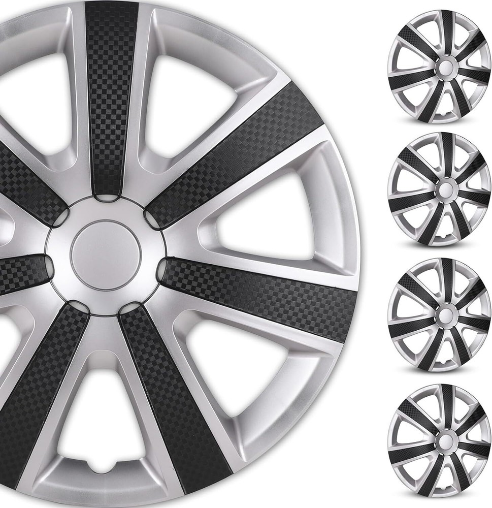 $ 19.5417-inch 4 Wheel Snap-On Hubcaps in Silver & Black for R17 Steel Rims