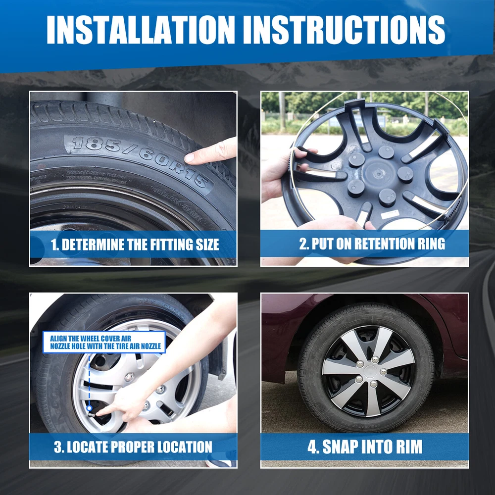 R13 Heavy Duty ABS 13 Inch 4-Lug Wheel Covers Universal Fit Easy Install
