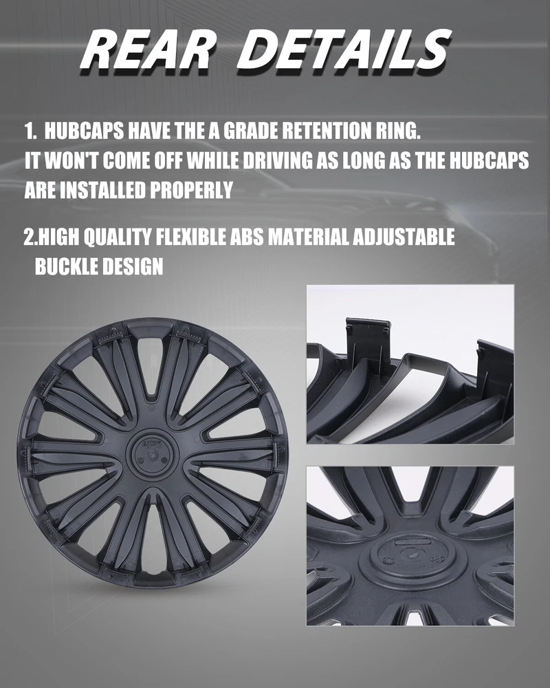 Home Payment Shipping Return Policy About Us Contact Us Feedback Title Other Car Refrigerator Front Bumper Rear Bumper Fender Flares Inner Fenders Side Steps Running Board A-Pillar Light Mount Brackets Headlights For Ford For Dodge For Chevrolet For Toyota For Mitsubishi Taillights For Chevrolet For Toyota For Ford For Jeep For Dodge For Honda For Nissan For Cadillac Fog Lights For Jeep For Dodge For Chrysler For Ford For Toyota For Chevrolet For Nissan For Lexus For GMC For Cadillac For BMW For Mercedes Benz LED Headlights For Ford For Dodge For Chevrolet For Toyota LED Taillights For Toyota For Chevrolet For Ford For Jeep For GMC For Honda For Cadillac LED Fog Lights For Toyota For Ford For Chevrolet For Mercedes Benz Jeep Headlights Tail Lights Fog Lights Refrigerator Bumper Fender Flares Inner Fenders A Pillar Light Mount Brackets Side Step More Chevrolet Headlights Tail Lights Fog Lights Refrigerator Bumper Ford Headlights Tail Lights Fog Lights Refrigerator Bumper Toyota Headlights Tail Lights Fog Lights Refrigerator Bumper Dodge Headlights Tail Lights Fog Lights Refrigerator Bumper GMC Headlights Tail Lights Fog Lights Refrigerator Bumper About this item: ✴ Universal Fit - Design for 15" iron hubs,NOT for aluminum alloy hubs. Please know that and check your wheel before purchase to ensure fitment. ✴ Protect Your Wheels - Keep your vehicle looking sleek and new with these universal-fit hubcaps that offer reliable protection against scratches, dings, and other types of damage. ✴ Easy to Install - Designed to fit most standard wheel size, these hubcaps can be quickly and easily snap on your wheels without the need for special tools, making them a great choice for busy vehicle owners. ✴ Durable - Made from high-quality ABS materials, these hubcaps are built to withstand the rigors of daily use, keep your vehicle looking great for years. ✴ Stylish - Upgrade the look of your car or truck with these sleek hubcaps to enhance the appearance of your vehicle. Specification: ✴ Type: Hub caps ✴ Number in Pack: 4 ✴ Color: Matte Black ✴ Material: ABS ✴ Compatible Wheel Diameter: 15 in ✴ Finish: Matte ✴ Installation Type: Snap-On ✴ Model: Universal Hubcap for Iron Wheels Package: ✴ One set of 4 Hub caps and 4 retention rings Payment Delivery details Terms of sales About us Contact us Payment We accept PayPal, credit card , Apple Pay & Google Pay etc. Delivery details All items will be shipped within 1-3 business days after payment received, we will try our best to ship out as soon as we can, hope for your understanding. Please double confirm your address and contact information, which will help the delivery faster and more accurately. Note :buyers who purchase international products need to pay import tariffs!!! Terms of sales Professional installation is highly recommended. Any problem of the item please feel free to contact us first , please D o Not leave negative feedback before that, or simply return it within 60 Days in original condition. We will resolve it for you ASAP. About us Any questions please do not hesitate to contact us directly by eBay message . We will reply you within 24 hours asap, thanks for your understanding. Contact us Should you have any problem or require any further information please feel free to contact us . If you are satisfied with our product and service, please kindly leave us a positive feedback. On Feb 8, 2025 at 01:45:28 PST, seller added the following information: