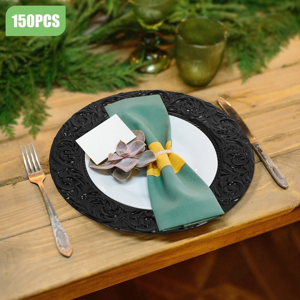 150 Black Plastic Plates Set - Disposable Dinner Plates Bulk Pack for Par Description Description This set of plates can add elegant decorations to your banquet table for weddings, family gatherings, and holiday celebrations. The premium PP and the beautiful texture on the surface make each plate sturdy and durable and give it a beautiful and glossy appearance to be a great addition to your table. Key Features Long Service Life: Made of PP with the spraying paint process, the product is waterproof and resistant to impact, wear, and fade, so you can use it for long periods with confidence. 150 Pieces a Set: This large quantity set of plates is not only suitable for home use, but also for large events, hotels, restaurants, and other commercial venues. In addition, its 12.99-inch diameter is large enough to accommodate small to regular-sized plates and bowls. Charming Appearance: The simple round shape, elegant black color, and beautifully embossed rim make these products premium decorations for your table, especially when matching with other dinnerware sets. Reusable: This is not a disposable item, you can use it many times without losing the color or affecting the aesthetics, superior quality, so it is economical. Easy to Move: The weight of each plate is approximately 0.37 lbs , allowing you to easily pick it up and move it to where you want to place it. Ideal Gift: This beautiful and premium set is an ideal housewarming or holiday gift for your friends, families, and colleagues. Customer Service: We aim to provide quality products and services. If you have any problems, please feel free to contact us. We will reply and solve the problem for you as soon as possible. Details Smooth Edges: They provide you with a smooth touch feeling while protecting your hands from getting scratched during daily use. Application The product is suitable for birthday parties, weddings, banquets, baby showers, family gatherings, restaurants, hotels, traveling, camping, picnics, BBQ, daily life, Halloween, Thanksgiving, Christmas celebrations , or other events. Specifications Color: Black Style: European Retro Shape: Round Material: PP Process: Spraying Paint Assembly Required: No Number of Pieces: 150 Each Product Size(D*H): 33*2cm/12.99*0.79in Packaging Size: 71*35.3*36.3cm/27.95*13.9*14.29in Gross Weight: 26.25kg/57.87lbs Net Weight: 24.94kg/54.98lbs Package Included 150* Plates Notes Please check the style and size carefully before ordering. These plates are not suitable for microwave or dishwasher, please wash them in cold water and wipe them with a dry cloth, take care of them for long time use. It is not recommended that the product comes into direct contact with food. Please allow the slight color difference caused by the shooting light and 1-3cm error due to manual measurement, and make sure you do not mind before you order. Payment Delivery details Terms of sales About us Contact us Payment We accept ebay payment 。 Fees such as import duties, taxes are not included in the item price or shipping costs. These charges are the buyer's responsibility. Delivery details Shipping: 2-9 working days to: USA Terms of sales We maintain high standards of excellence and strive for hundred percent customer satisfaction. Feedback is very important to us. We hope that you contact us immediately before you give neutral or negative feedback, so that we can address your concerns. It is impossible to address issues if we do not know about them! About us Your satis faction is our ultimate goal. We work hard to earn your trust and future business. Our certified technicians have tested each item before shipping. The unit comes with 1 year limited warranty on all manufacturing defects. a) If you receive a defective item, you may return it or ask for a discount. Please contact us within 14 days after you receive the package. b) What you returned must be intact and in its original packaging as re? u. Customer is responsible for shipping costs of the returned item. c) We will cover the cost of shipping back t with the shipping rate indicated in the registration page. We will send you a new unit or refund the full payment you paid. Thank you. Contact us Business Hour Business Hour: Monday To Friday: 8:30 AM to 5:00 PM (Beijing China time) Due to time zones, our reply to your questions may not be immediately. But within above working time, we will reply your email within 24 hours. If it's non-workdays, please kindly be patient and wait till Monday. Please contact us with ebay message. Please feel free to contact us if you have any questions. Monday To Friday: 8:30 AM to 5:00 PM (Beijing China time) Due to time zones, our reply to your questions may not be immediately. But within above working time, we will reply your email within 24 hours. If it's non-workdays, please kindly be patient and wait till Monday. Please contact us with ebay message. Please feel free to contact us if you have any questions.