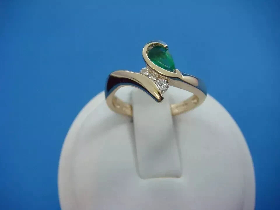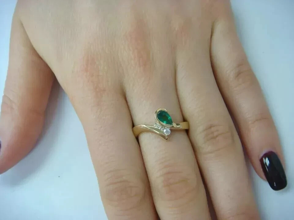 Crafted to embody elegance, this 1.50 Ct Pear Cut Simulated Emerald Engagement Bypass Ring captivates with its vibrant green hue and impeccable cut grade. The sterling silver base, plated with 14k yellow gold, provides a warm contrast that enhances the ring's overall allure. The bezel setting ensures the safety and prominence of the simulated emerald's pear shape, measuring 7 mm in length with a width of 5 mm and a depth of 3.1 mm. Designed for versatility, the ring accommodates all sizes and is adjustable for a perfect fit. Its nickel-free construction makes it a considerate choice for those with sensitive skin, while the option to personalize it adds a touch of individuality. Whether it's for an engagement, anniversary, or any other celebratory occasion, this ring is a timeless piece that promises to enchant.