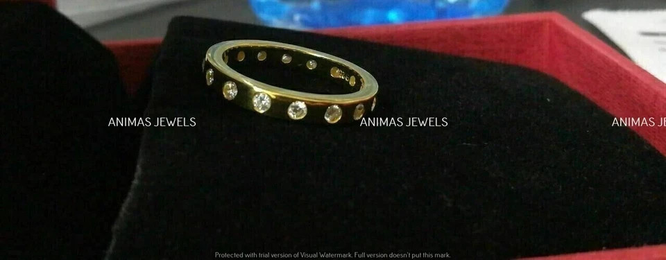 1.50 Ct Round Cut Moissanite Eternity Wedding Band Ring 14K Yellow Gold Plated Customization: Want to add your personal touch to this piece? Contact us and we will create one just for you. Most customization requests include: 1) Ring Resizing 2) Redesign 3) Metal Change (Silver/10K Gold / 14K Gold /18K Gold) 4) Metal Color Change (White/Yellow/Rose/Black) 5) Color Stones (White Topaz, Pink Sapphire, etc) 6) Engraving (Name or any message - no of characters subject to size of jewelry) 7) Anything under the sun that catches your fancy, we will give it a try :) Payment: We accept payment via PayPal only. You can also pay using your credit card, via paypal, by using paypal as a guest. Payment is required within 3 days of the sale of an item. Shipping: International shipments are usually delivered within 2 to 6 weeks, depending on the time taken to clear customs. We are not responsible for any delays due to customs. Please note that all countries charge a duty on imported goods. A customs clearing charge is also imposed in many countries. We are not responsible for the amount of duty or any other related charges. Terms & Sale: We want to ensure that you are completely satisfied with your purchase. If not, then please let us know before leaving any feedback and allow us to work with you to completely resolve any issues that you might be facing. You can return the item for a full refund LESS shipping, within 14 days of item(s) receipt date. There is no restocking fee. 100% Satisfaction Guaranteed. All returns must reach us within 14 days after the item was delivered to you the item must be in the original condition and with the original tags attached. Contact Us: You can contact us by clicking on 'ask seller a question'