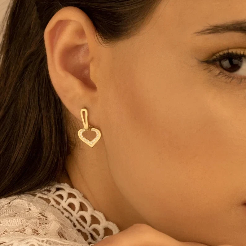 Main Stone Depth: 1.5 mm Features: Engraved, Nickel-Free Country of Origin: India Metal Purity: 925 Main Stone Treatment: Not Enhanced Ear Area: Lobe Metal: Sterling Silver Customized: Yes UPC: Does Not Apply Handmade: Yes Main Stone Width: 2 mm gtin13: Does Not Apply Brand: kj jewelry Main Stone Color: White Item Length: 18 mm Secondary Stone: Not Applied Color: Yellow Country/Region of Manufacture: India Cut Grade: Excellent Main Stone Length: 2 mm Personalize: Yes Style: Hoop, Huggie Theme: Angels, Beauty, Fashion & Costumes, Love, Luck, Vacation, Western Material: Metal, Stones Personalization Instructions: As Per Buyer's Requirement Main Stone Creation: Simulated Occasion: Anniversary, Birthday, Christening, Christmas, Confirmation/Communion, Engagement, Father's Day, Graduation, Mother's Day, Valentine's Day, Wedding Main Stone Shape: Round Type: Earrings Item Diameter: 10 mm Base Metal: Sterling Silver Main Stone: Simulated Diamond Seller Warranty: Yes Setting Style: Prong Number of Gemstones: Not Applied Closure: Clip-On Shape: Heart Wholesale: Yes