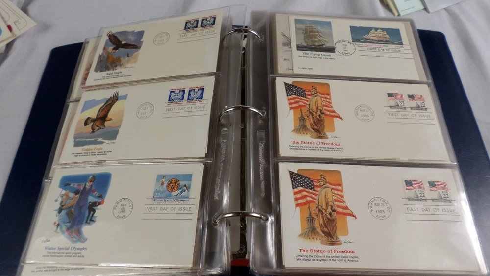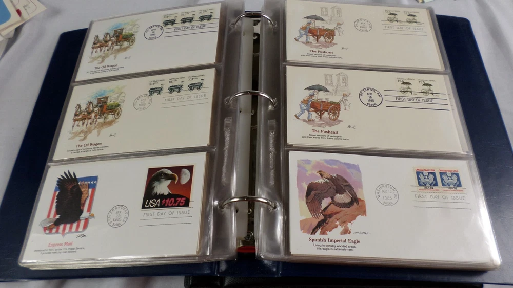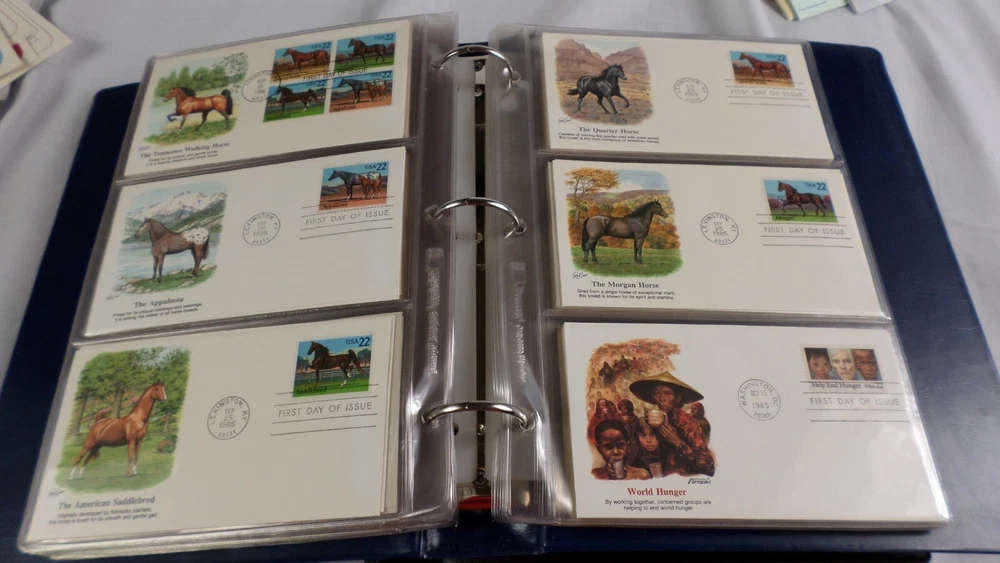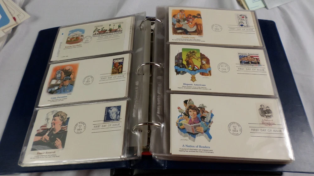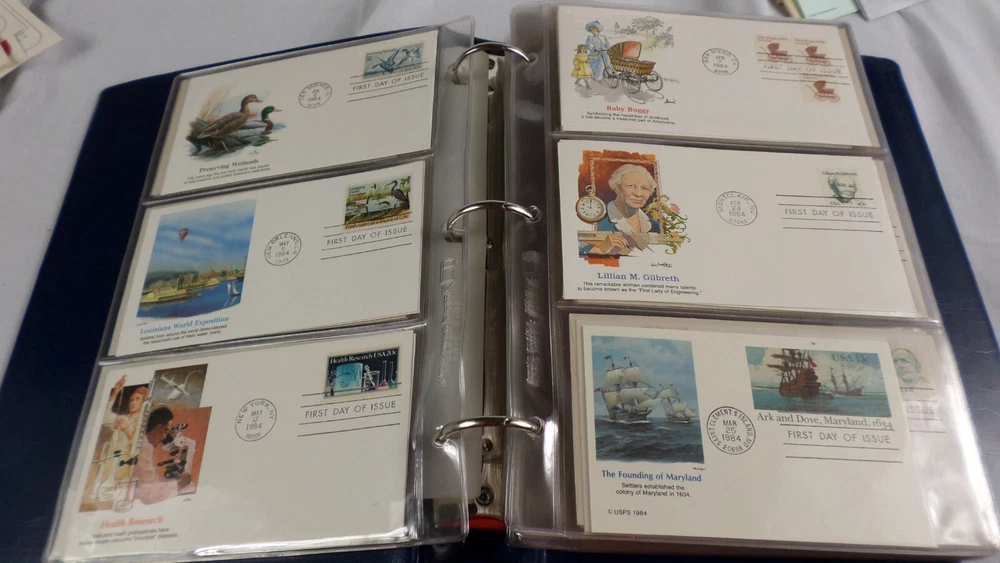 You are buying 150 First Day Covers Fleetwood Album 1984-1986 Envelopes, Few Postal Cards MINT. You will received 150 First Day Covers made by Fleetwood. The years these covers are from are 1984 to 1986 and include everything. There are transportation Official mail, Express and Official Mail and much more. There are almost all envelopes and a few postal cards, but they are all 1st day covers. Fleetwood covers are just gorgeous. I could only show the first 129 of these, I run out of space on the pictures so 21 of these are not shown They vary from .06 cents to 10.75 Cents. They are mint, the album is mint, great collection of gorgeous Fleetwood covers and they are all behind plastic. There are many more pictures, but ebay only allow 24. Smoke and Pet Free. Shipping is calculated for you, no overseas shipping.