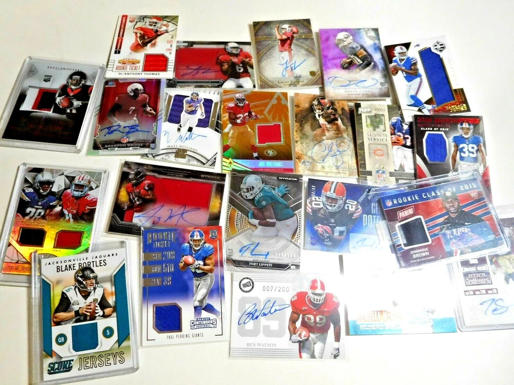 This is a lot of 1 FOOTBALL card pack. Pictures show the variety of packs and game jersey cards available. You will receive One (1) Pack per lot and One (1) Bonus Game Used or Autograph Card for each 5 lots purchased. You will NOT receive everything in the pictures for $1.50. Thank you. This is a lot of 1 Unopened FOOTBALL Card pack. I have over 200,000 cards sitting in unopened boxes and cases from mostly the 1990's, much of it in storage. These were acquired from my own collection, buying out countless other dealers and collectors, even several local store inventory buyouts. I need to move some inventory since I'm tired of paying the monthly storage bill! I have Topps, Score, Fleer, Pro Set, Upper Deck, all the top brands. The packs will come from unsearched boxes so you will have a chance to get all the best cards from that year and set. I will send you 1 Umopened Pack per lot. If you buy multiple lots, I will give you a variety of packs (we have about 12 different Football Card Packs in stock currently), and subsequent packs ship for just 55 cents more per item. DEAL # 1 Buy 5 lots and get a free Game Used Jersey or Autograph Card! DEAL # 2 Buy 10 Lots and I will include 2 Free Bonus Game Jersey or autograph cards! DEAL # 3 Buy 20 lots and get 5 Jersey or certified autograph cards as well as Priority Mail Shipping! Key Years are 1990 Pro Set series 2 (Emmitt Smith RC) and 1991 Ultra / Upper Deck / Pro Set 2 (Favre RC) Packs may include foil, wax, rack, cello, or jumbo pack configurations in larger lots. Multiple lots will contain pack duplication, as the pictured packs represent the majority of the remaining inventory in stock. All packs are between 26-29 years old, some packs may contain gum. Please do not chew the gum!! Please keep your youngsters from chewing the gum as well. Unopened packs are great fun and a cheap way to introduce youngsters into the hobby - they are also fun to open if you remember opening packs like these when you were a kid! Cards are pack fresh, so condition is for the most part near mint to mint! These packs may contain any number of hall of famers and superstars with an opportunity to get Gem Mint cards for Grading. Some packs may contain very long shot autographs as well. Good luck! To our buyers in Canada and other foreign countries: Unfortunately the shipping rates for international mail have increased drastically in recent years. Please note that you will have to pay the shipping rate to your location charge by the eBay Global Shipping Program for this item. Thank you for your understanding.