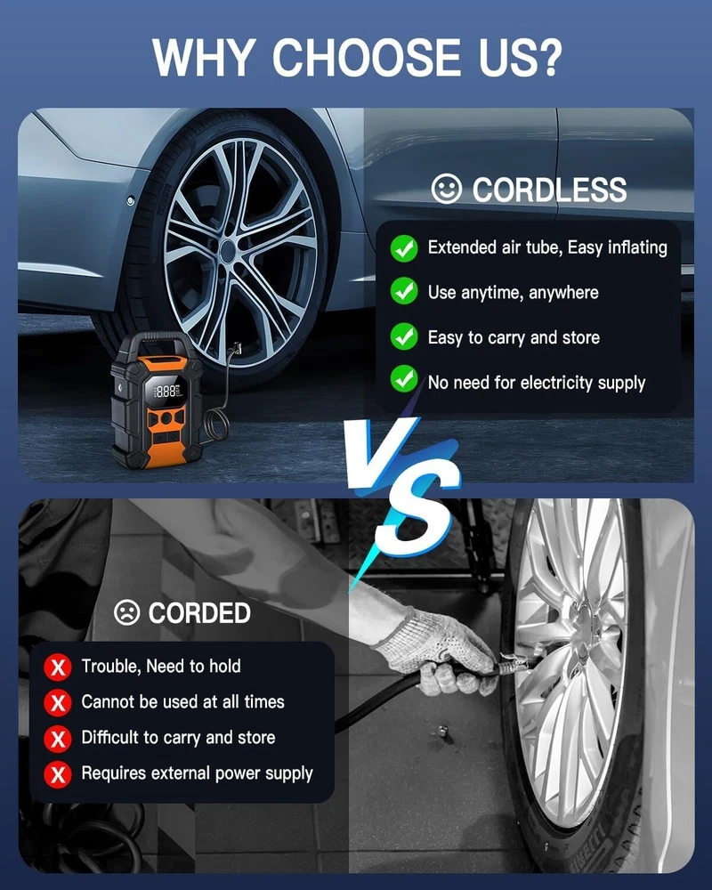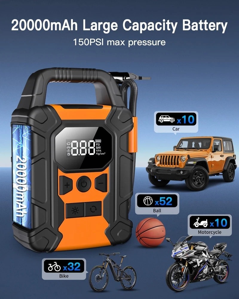 150 PSI Cordless Tire Inflator with LED Light, Portable Air Compressor for Cars ‹ › ‹ › ‹ › ‹ › ‹ › ‹ › ‹ › ‹ › ‹ › ‹ › ‹ › 150 PSI Cordless Tire Inflator with LED Light -Portable Air Compressor for Cars Features: High-performance chip reaches up to 150 PSI. Inflate a 185/65/R15 car tire from 0 PSI to 36 PSI in just 5 minutes. Quick inflation from 29 PSI to 36 PSI in 50 seconds. Large LED display for real-time pressure values and preset pressure notifications. 5 inflation modes including presets for car, bike, motorcycle, and ball. Custom mode allows user to set pressure values for various inflation needs. Built-in pressure gauge and LCD screen for monitoring tire pressure accurately. Bright LED light for use in low-light conditions. 20000mAh rechargeable battery for extended usage; also doubles as a power bank. Benefits: Faster inflation saves time and gives you peace of mind. Easy-to-read display helps you monitor inflation progress effortlessly. Versatile usability for different types of vehicles and equipment. Portable and compact design makes it travel-friendly. Gives extra functionality as a power bank for electronic devices. Perfect gift for drivers, cyclists, and adventure seekers. Why choose our Cordless Tire Inflator? Are you tired of struggling with traditional tire pumps? Our 150 PSI Cordless Tire Inflator is designed to deliver high performance and convenience right at your fingertips. With an impressive inflation speed and multiple modes, it caters to all your inflation needs. The bright LED light and powerful rechargeable battery ensure you're ready for any situation, day or night. Invest in peace of mind and efficiency. Make our portable air compressor your go-to companion for all your inflation needs. Order now and experience the difference! Shipping Free & Fast Shipping - We offer free shipping to most of the USA with a normal delivery time of 3-7 days. However, due to the current situation, additional delivery time (up to 3 weeks) may be required for some items. Alternative Carriers - We may use alternative carriers (e.g. USPS, FedEx, UPS, etc.) to ensure your package arrives safely and on time. Due to the use of multiple carriers, we are unable to provide a tracking number automatically. Handling Time - Orders are processed and shipped within 1-2 business days of receiving cleared payment. Shipping Restrictions - Shipping to Alaska, Hawaii, Puerto Rico, Guam, and other US territories may incur shipping charges or delivery restrictions. Please contact us before ordering, or your order can be refunded/cancelled. State Restrictions - There may be restrictions based on your state of purchase. For example, certain items may not be shipped to California due to state regulations. Contact for Tracking Updates - If you require tracking updates or have any concerns about the delivery of your order, please feel free to contact us, and we will be happy to assist you. Return 30-Day Hassle-Free Returns - We want you to be completely satisfied with your purchase. If you are not, you can return the item within 30 days of receiving it for a full refund or exchange. Easy Return Process - To start a return, simply contact us and we will provide you with a prepaid return shipping label and detailed instructions. Restocking Fee - There are no restocking fees for returns. However, the buyer is responsible for return shipping costs if the return is not due to a seller's error. Refund Processing Time - Refunds will be processed within 5 business days of receiving the returned item in its original condition. Payment We accept all major credit cards, PayPal, and Apple Pay for your convenience. Your payment information is secure and encrypted to ensure a safe and seamless transaction. Please complete your payment within 3 days of purchase to avoid any delays in shipping. Feedback Your feedback is extremely important to us. We strive to provide the best products and customer service possible. If you are satisfied with your purchase, please take a moment to leave us a positive review. If you have any concerns or issues with your order, please contact us before leaving negative feedback. We are committed to resolving any problems and ensuring your satisfaction. Contact Us If you have any questions or concerns, please feel free to reach out to our customer support team. You can contact us through the eBay messaging system. We are available Monday to Friday, 9:00 am to 5:00 pm EST, and we will do our best to respond to your inquiry within 24 hours. Buy it now and enjoy a pleasant shopping experience! UPC: Not Set Model: Not Set Item Width: Not Set Item Length: Not Set Item Height: Not Set Item Diameter: Not Set Item Weight: Not Set Unit Quantity: Not Set Set Includes: Not Set Brand: Unbranded Type: Air Compressor Portability: Portable Voltage: 12 V Power Source: Battery Powered Maximum Working Pressure: 150 Psi Tank Capacity: Not Set Lubrication Type: Not Set Horse Power: Not Set Tank Material: Not Set Flow Rate: Not Set MPN: Not Set Color: Black Country/Region of Manufacture: Not Set Manufacturer Warranty: Not Set Unit Type: Not Set