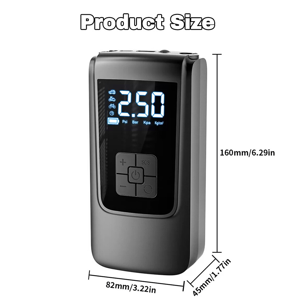 Store Categories Store Categories Other Product Description Features: Versatility: This digital air pump is not just for inflating tires, but also for charging devices, inflating sports equipment, powering car lights, and more. With its wide range of connections and accessories, it can meet various needs and provide versatile functionality. Efficient and Convenient: The car tire inflator utilizes advanced pneumatic technology, allowing for quick inflation of tires in just a few minutes. It is also highly portable, so you can carry it with you wherever you and use it whenever needed. Easy Operation: The smart air compressor features a digital display and user-friendly button controls, making it easy for users to operate and adjust the pressure accurately. Additionally, it comes with its own LED light for convenient nighttime operation. The screen and buttons light up when turned on, ensuring ease of use in low-light conditions. Safety Features: The 12V tire pump is equipped with a built-in intelligent chip that monitors tire pressure. It automatically stops inflation when the preset pressure level is reached, preventing over-inflation and potential safety hazards. It also has overheating protection for added safety. The inflation port is designed with anti-scalding measures, with temperatures reaching up to 120°C, and an internal sinking design to reduce the risk of burns. Premium Quality Materials: The mini tire pump is made from high-quality materials, ensuring durability and years of reliable use. It is also waterproof and dustproof, adding to its reliability and longevity. Specifications: Material: ABS Display: LCD display Working voltage: 12V Working current: ≤6A Piston diameter: 17mm Maximum atmospheric pressure: 0-150PSI Accuracy: ±1.5psi Air volume: 15L/min Continuous working time: 8-10min Type-C charging cable: about 80mm Charging time: 5-6h Usage time: 30min Length of air hose: 100mm/3.9inch Package Includes: 1 x Air Pump 1 x Inflation Hose 4 x Inflatable Nozzle 1 x Charging Cable 1 x Cloth Bag 1 x User Manual Note: 1. Due to the different monitor and light effect, the actual color of the item might be slightly different from the color showed on the pictures. 2. Please allow 1-2cm measuring deviation due to manual measurement. Payment Policy Shipping Policy Returns Policy Contact Us Payment Policy We accept pay ment via PayPal, DebitCard, Visa, MasterCard, Discover etc. Shipping Policy 1. We strive to ship all items within 1-2 business days of receiving payment. 2. Please make sure the correct Ship-To address is entered before checking out. Once the payment is completed, you may not be able to change the shipping address. 3. If there are any issue s with your order, including delayed delivery or loss, please don't hesitate to contact us. Returns Policy 1. We offer a 30-day free return policy for all purchases. 2. Please contact us first to arrange the return details for any items that need to be returned. 3. For any Ex change, Refund or Return, the item must be in its original condition, including the box, packaging, and all the accessories or gifts. Contact Us 1. Customer satisfaction is very important to us and our feedback rating reflects this satisfaction. If you have any question or concern, please contact us via eBay message. 2. We respond to all eBay messages as quickly as possible. There would be time difference, non-working hours or public holidays that have prevented us from making an instant response. Thank you for your patience and understanding. Copyright © 2023 Dianxiaomi