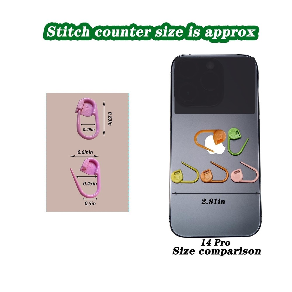 150 Pieces Knitting Crochet Locking Stitch Markers Stitch Needle Clip Counter 10 Colors (Color Ship Randomly) Product Details Color: Multicolor Material: Plastic Brand: Meikeer Number of Pieces: 15 UPC Package Dimensions: 5.12 x 3.62 x 0.75 inches Item Weight: 2.39 ounces Manufacturer: Meikeer Item model number: LE Is Discontinued By Manufacturer: No Date First Available: January 13, 2019 Locking stitch markers set: 150 pieces plastic stitch markers in 10 colors, each color for 15 pieces MATERIAL:made of good plastic, designed to hook into the knitted or crocheted stitch so it will not slip out Stitch counter size: is approx 22 x 10 mm/ 0.86 x 0.38 inch (L x W) Mark stitches safely: good for marking beginning and ending of pattern stitches, and where to increase or decrease the number of stitches, not slip out or snag your knitting. You can use these locking ring stitch markers in knitting, weaving, crocheting, DIY arts and craft projects or scrapbooking as well FEATURES:the storage box has 10 separate compartments that allow easy separation of 10 color needle counters,the compact size makes them easy to store in your crochet accessories kit or knitting supplies bag