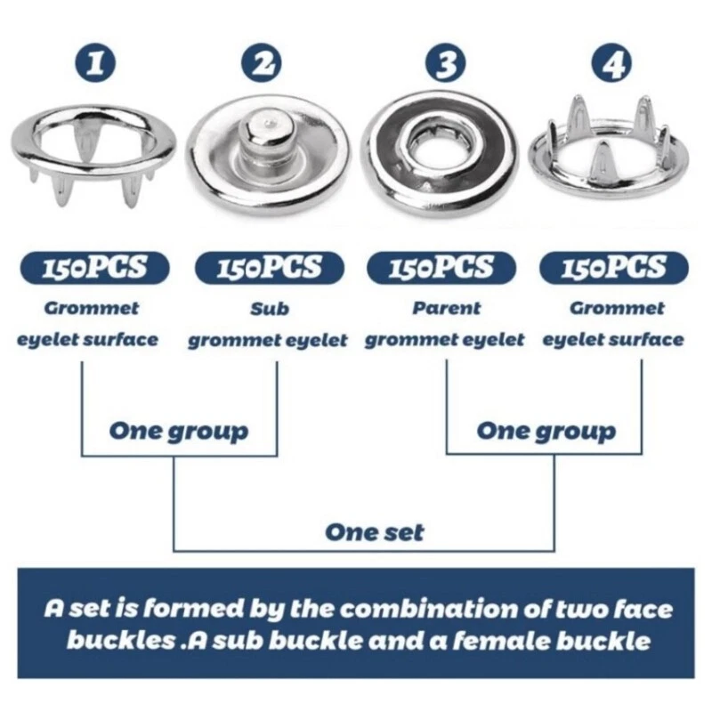 150 Sets of 9.5MM Hollow FiveClaw Buckles Stainless Steel Buttons for Features: and high What You Will Get: These buttons are 9.5mm/0.37" in diameter. High Prong button is , making it corrosion and Well-made, bright, rust-proof, not easy to fade and , and have a long service Storage Box: The button is neatly placed in a storage box for easy storage and portability. Organized neatly to loss without cluttering your workbench. Easy to Use: fastener's installation does not require drilling, just follow the our pictures, and you can easily install them. The prong button has minimal damage to the fabric and has five corners for firm and stable snap.is to practice on unwanted Use: This can be used for your everyday clothing making or sewing for applications that require a light pull button action and thin Most commonly used in work clothes, baby clothes, shirts, hats, jeans, pet clothes, clothes. Specifications: Process: Stainless steel polishing Size: 9.5mm stainless steel Package Includes: 1 x 150 Sets Button note: No retail package. Please allow 1cm error due to manual measurement. pls make sure you do not mind before you bid. Due to the difference between different monitors, the picture may not reflect the actual color of the item.