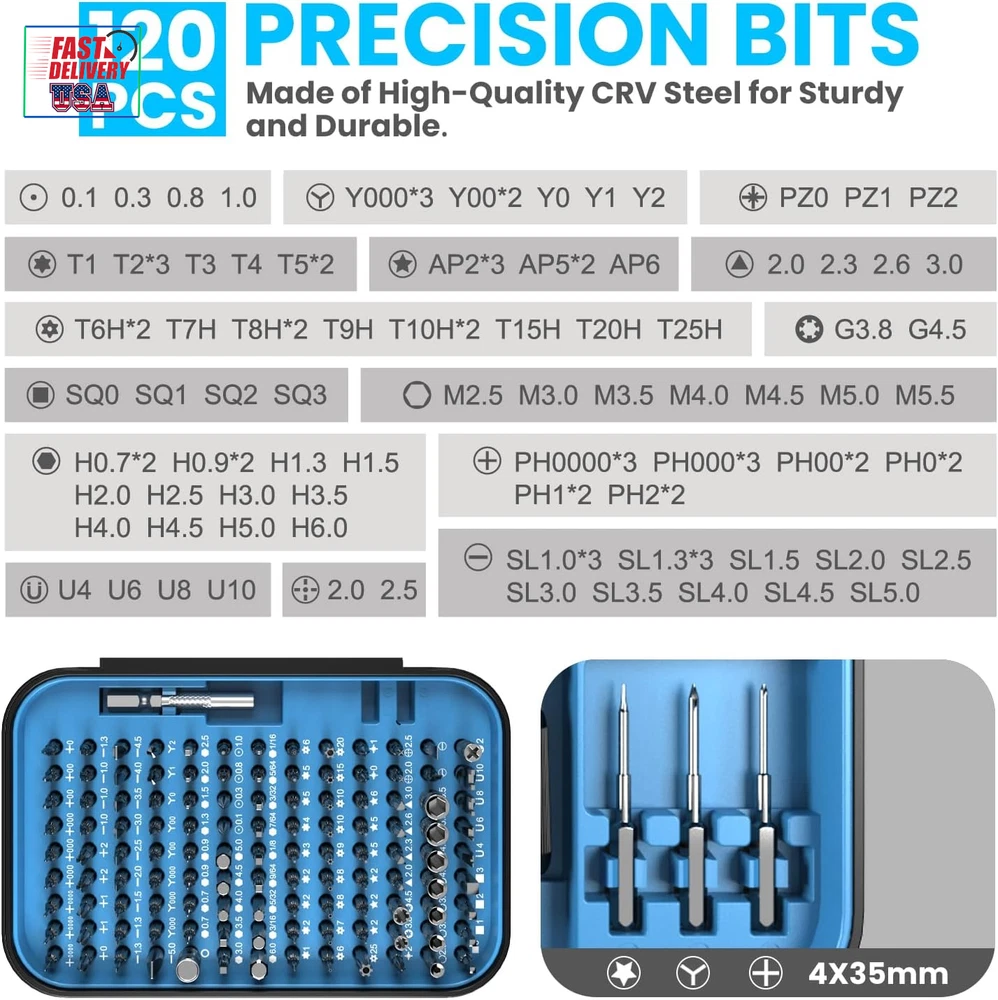 Store New Arrivals Add to Favorite View Feedback Contact 150 in 1 Precision Screwdriver Set, 120 Bits Full Range Small Screwdriver Set, Magnetic Mini Repair Tool Kit for Ring Doorbell, Laptop, Switch, PS5, Xbox, Macbook, Iphone, Watch, Glasses - Navy Blue Description Item Package Quantity 1 Item dimensions L x W x H 5.9 x 4.3 x 2.1 inches Number of Items 150 Head Style function(f) {var _np=(window.P._namespace("DetailPageProductOverviewTemplatesJava"));if(_np.guardFatal){_np.guardFatal(f)(_np);}else{f(_np);}}(function(P) { P.when('A').execute(function(A){ A.on('a:truncate:po-attribute-truncate-2:updated', function(data) { var isTruncated = !data.truncateInstance.getIfTextFits(); var seeMoreElement = document.getElementById('po-attribute-see-more-id-2'); if(seeMoreElement) { seeMoreElement.style.display = isTruncated ? '' : 'none'; } }) }); })); Tri point, Flat, Torx Security, Torx, Phillips, Square, Gamebit, U-Shaped, Pentalobe, Pozidriv, Triangle, Hex See more Color Blue Material Stainless Steel Batteries Required? No Item Weight 1 pounds Batteries Included? No Model Name Precision Screwdriver Recommended Uses For Product Electronics Item, Home Improvement Special Features Ergonomic Special Feature Ergonomic Product Dimensions 5.9 x 4.3 x 2.1 inches ALL-INCLUSIVE REPAIR TOOL KIT: Cazeyoo Precision Screwdriver Set boasts an extensive bit collection, making it suitable for fixing ring doorbell, Switch, iPhones, iPads, MacBooks, computers, laptops, tablets, PCs, smartphones, watches, gaming consoles (PS3/PS4/PS5, NINTENDO, Xbox), and even glasses. With Tri point, Flat, Torx Security, Torx, Phillips, Square, Gamebit, U-Shaped, Pentalobe, Pozidriv, Triangle, Hex bits, this set tackles a wide range of repairs. BUILT TO LAST, ENGINEERED FOR COMFORT: The Small Screwdriver Set prioritizes both user comfort and tool longevity. The handle surface is made of non-slip silicone, which enhances the friction of the knob, allowing you to maintain precise and accurate work for a long time. The 360° swivel cap offers precise control and effortless maneuverability during intricate repairs. EXCELLENT CONVENIENCE: The Cazeyoo mini repair tool kit incorporates a series of magnetic features to optimize your repairs. Magnetic screwdrivers enhance control and stability for effortless screw placement, preventing them from slipping or getting lost. With a small and exquisite storage box, this will be a must-have all-round tool for you at home and when traveling. HELPER FOR ENTHUSIASTS: In addition to the necessary handle and bits, this precision screwdriver kit also comes with a flexible shaft that allows you to rotate the handle to complete a variety of tasks. We also provide tweezers for easy access to parts, suction cups, pry bars, opening picks, SIM card removal tools, etc. Whether you are a professional repair technician or a DIY enthusiast, it will be your great helper! THE PERFECT GIFT: The most complete precision screwdriver set to meet your needs for disassembling, repairing and reassembling mobile phones, gaming consoles, wearables, laptops, desktops, tablets and more! The Cazeyoo screwdriver set is elegant and compact, and we believe it is a great gift for anyone who loves home improvement projects. Product Description Cazeyoo Precision Screwdriver Set ABOUT US We offer the best prices around on high quality products. Our E-store includes media such as books, movies, music and games while offering electronics, toys, sporting apparel, clothing, tools, general home, garden items and more. SHIPPING We are always working hard to ensure your package arrives as soon as possible. Please understand that some factors like weather, high postal traffic, and the performance of shipping companies are outside of our control. We offer free shipping to the lower 48 states and ship within 2 business days of payment, usually sooner. We do not accept P.O. Boxes. Please provide a physical address. For shipping outside of the continental USA, we only use eBay's Global Shipping Program.The item is shipped to KY and then sent to the rest of the world. International customers are responsible for all duties and taxes. Continue to check out in order to calculate costs for shipping the item to your country. Messages regarding eBay's Global Shipping Program MUST be directed at eBay EXCLUSIVELY. RETURNS We offer a 30-Day Return Policy on items which you are not completely satisfied with. You have the option for a full-refund or an exchange of the item. No returns are available on items shipped outside of the USA. PAYMENT We accept PayPal. CONTACT US This page content is yet to come Please ad us to your favorite seller and visit again later Thank You CUSTOMER SATISFACTION We try our very best to make sure every customer is completely satisfied. If there's a problem, message us! We're happy to help. WE ACCEPT Copyright © 2021 AutoDS. | All Rights Reserved