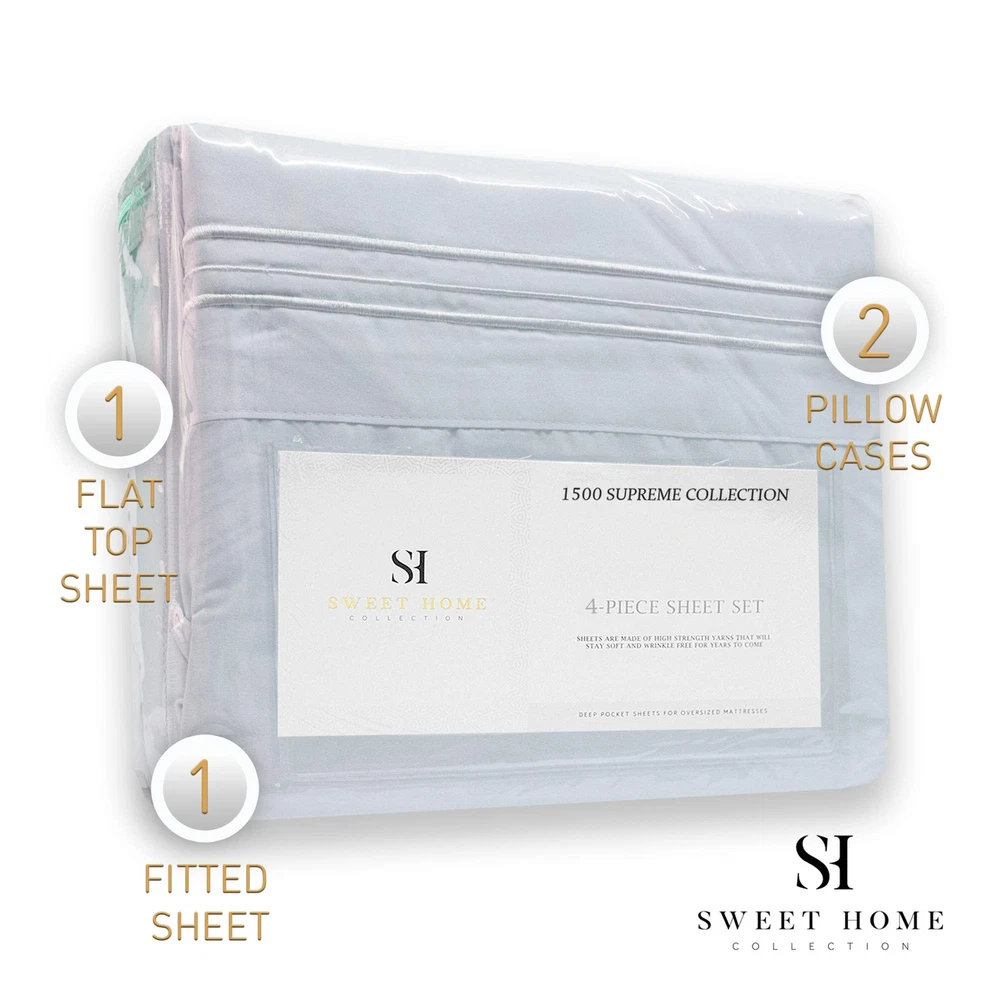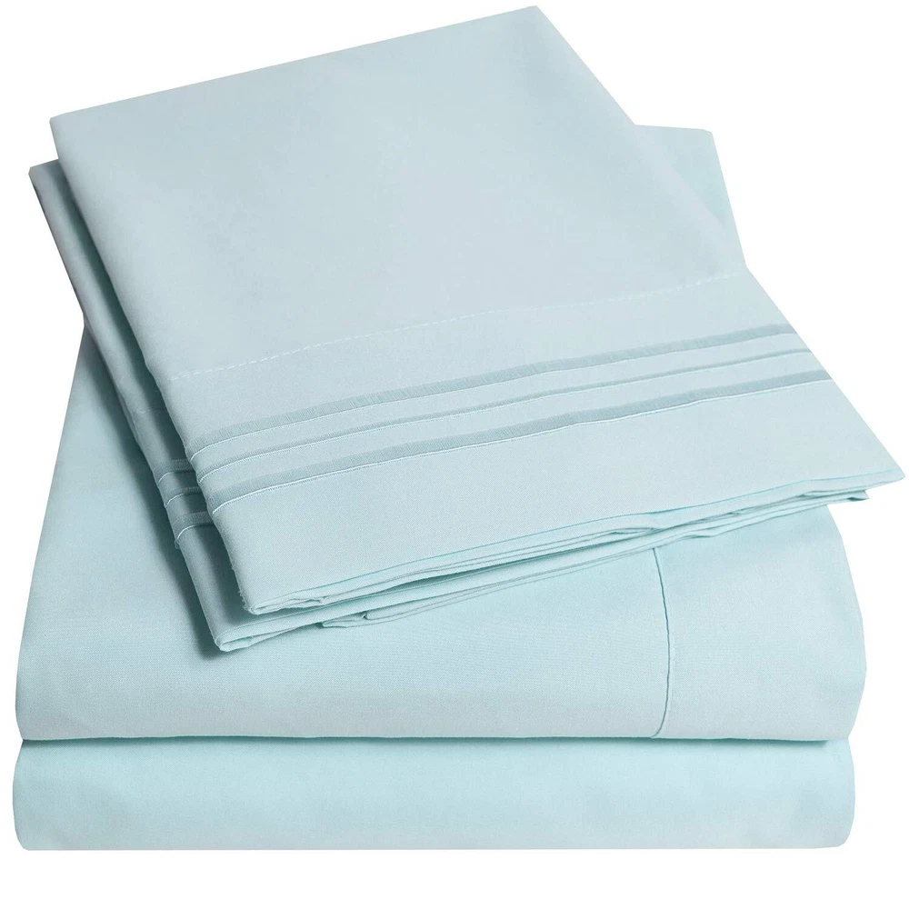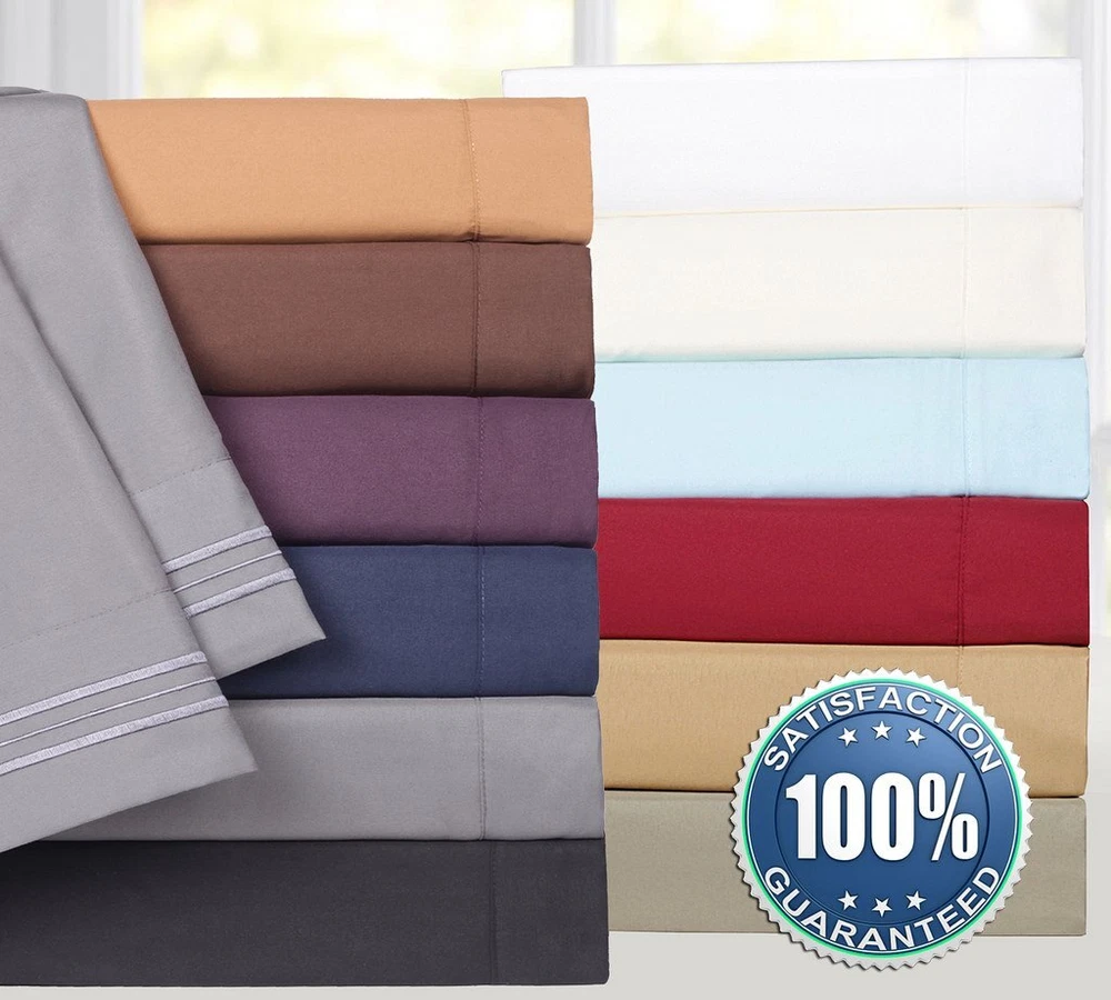 Why Choose Us? At , we strive to create products using the finest textiles possible at reasonable prices. We find techniques that include better stitching, stronger weaving, and more affordable materials. Quality: Our 1500 Supreme Collection is a fine display of our commitment to quality and customer feedback. Our goal is to create repeat customers for years to come. Microfiber is paving the way for a future of fine linens using the latest technology. Used across all industries and growing in popularity, microfiber continues to get strong and more reliable every year. Price: Compare our price to other similar products. At only $25, we are not only the best quality, but the best price as well. Easy on the wallet is one of our core values. Shop With Us: Have a look at our entire bedding line to restore your bedroom. We provide your essential sheet sets, bed skirts, duvets, comforters, furniture protectors, and much more. Feel free to contact us so we can assist you. How We Measure Up: Here are our measurements for bedding, Queen: 1 Flat (92"" x 102"") 1 Fitted (60"" x 80"") and 2 Std Pillow Cases (20"" x 30""). King: 1 Flat (102""x105"") 1 Fitted (78""x80"") and 2 Std Pillow Cases (20""x40""). Cal King: 1 Flat (108""x102"") 1 Fitted (72""x84"") and 2 Std Pillow Cases (20""x40""). Full: 1 Flat (81""x96"") 1 Fitted (54""x75"") and 2 Std Pillow Cases (20""x30"") What's inside the package: The Full, Queen, King, and Cal King come with 1 fitted sheet, 1 flat sheet, and 2 pillowcases. The Twin comes with 1 fitted sheet, 1 flat sheet, and 1 pillowcase. Easy Care: Feel free to wash on cold and tumble dry without having to iron after because our bedding is wrinkle resistant. LUXURY QUALITY 4 PIECE SHEET SET - Embroidered pillowcases, deep pocket fitted sheets, 100% double brushed bed sheets for premium comfort and heirloom-style quality. A fresh set of bed sheets is always welcomed whether it be for your own bed or as a gift. With over 40 different color sheet set options there will certainly be the perfect match for any bedroom furinture set. Whatever the occasion may be these soft and cozy bed sheets are a great choice. HOW WE MEASURE UP: Queen: 1 Flat (92" x 102") 1 Fitted (60" x 80") and 2 Standard Pillowcases (20" x 30"). King: 1 Flat (102"x105") 1 Fitted (78"x80") and 2 King Pillowcases (20"x40"). Cal King: 1 Flat (108"x102") 1 Fitted (72"x84") and 2 King Pillowcases (20"x40"). Full: 1 Flat (81"x96") 1 Fitted (54"x75") and 2 Standard Pillowcases (20"x30"). Twin: 1 Flat (66" x 96"), 1 Fitted (39" x 75"), 1 Standard Pillowcase (20" x 30"). DEEP POCKETS: Fits mattresses up to 16" deep with elastic all around the fitted sheets. Sourced from the highest quality microfiber with the largest selection of rich vibrant colors that will certainly add to your bedroom decor. These bed sheet sets are also wrinkle and fade resistant to give your bed that fresh new ironed look every single time! WASH INSTRUCTIONS: Machine wash in cold water with similar colors. Tumble dry low. Do not bleach. Equivalent to 1500 Thread Count Sheet Sets. Brand New and Factory Sealed No Ironing Necessary. WRINKLE & FADE RESISTANT: Lay flat for 10-15 minutes and watch the wrinkles will begin to disappear on their own. Cotton sheets require immediate removal from drying and regular ironing in order to maintain crisp and clean appearance. Our 1500 Supreme Collection sheet sets don't require any effort tafter a complete wash cycle.
