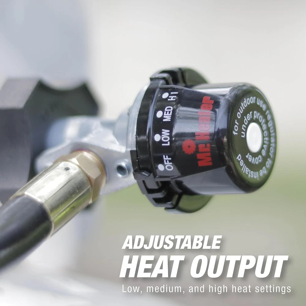 15,000 BTU Single Tank Top Portable Propane Radiant Heater,Grey/ Grey/ Silver Product Details Brand: Mr. Heater Special Feature: Portable Color: Grey/ Silver Form Factor: Dish Indoor/Outdoor Usage: Outdoor Power SourceHeating Method: gas_poweredRadiant Item WeightHeat Output: 1.37 Kilograms15000 British Thermal Units Single burner radiant propane heater mounts directly to a 20 lb tank for easy portability High-medium-low regulator: 15,000-12,500-10,000 BTUs Tip-over safety shut-off switch Approximate 29 hour run time on high with a 20 lb tank Easy match lit pilot - no electricity required Quiet burning Ideal for job sites, campsites, porches, tailgating, hunting, and ice fishing Outdoor use only The 10,000 - 15,000 BTU single tank top radiant propane heater is the perfect solution for reliable heat in a variety of outdoor applications. Easy and quiet operation, along with a tip-over safety shut-off will bring you peace of mind, whether at the job site, campsite, or tailgating for your favorite team. Features a soft nose P.O.L. and adjustable regulator with three heat settings - 10,000, 12,500 and 15,000 BTUs. Mounts directly to a 20 lb propane tank with up to a 29 hour run time on high.