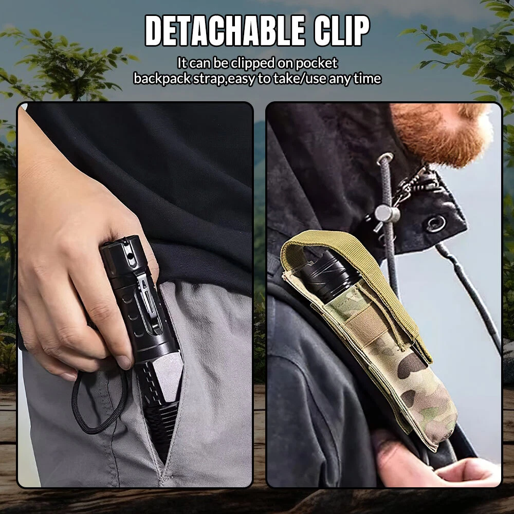 Specification : Material: Aluminum + Plastic Main light mode (click the switch to enter): Super bright - medium bright - flashing Side light mode (press and hold to turn on): Super bright - medium bright - red bright - red and blue flashing Power supply: Internal rechargeable 2600mAh lithium battery. Charging method: USB-C Charging time: Estimated 3.5 hours Operating time: 3-4 hours for brightest mode, longer for other modes Power indicator (blue indicator): 25%-50%75%-100%. Waterproof level: IPX4 Product size: 165*41*28mm Weight (burner): 150G Attention: 1.Due to the high working power of the super bright flashlight, the LED light-emitting position generates more heat, so please do not touch the light-emitting position (ie the head of the flashlight) with your hands; 2. The flashlight should not be used under water, not submerged, not in the rain; 3. Do not irradiate the human eye; 4. Do not give it to children to use ☀ Super Bright Flashlight ✔ uses a super bright high power wick to dispel the darkness, with a maximum lumen value of 15000,000 and a super long range of 500 meters. Perfect for work, outdoor, camping, adventure and emergency use. ☀ LED Rechargeable Flashlights ✔ with built-in rechargeable battery, equipped with USB-C charging port, charging time is only about 3 hours, in the brightest mode, usage time up to about 4 hours. And has a smart power indicator light 25%-50%-75%-100%, always know the power situation. ☀ 7 Lighting Modes ✔ The main light 3 modes, click the switch to give (super bright - medium bright - flashing), side lights 4 modes, long press the switch to give (super bright - medium bright - red - red and blue flashing), the flashlight can be turned off directly after 10 seconds of operation in any mode, without going through all modes. ☀ Tactical Flashlight Adjustable Focus ✔ Many people say the flashlight they have is too heavy, we have solved this problem by using a high quality ABS flashlight body and Aluminum head. Combines quality with we ight reduction. The flashlight weighs less than 150 grams and is much easier to use. ☀ ✔ Package contents, 1*flashlight, 1*charging cable, 1*lanyard, 1*clip and instruction manual. We have carefully checked all the items before shipping to make sure the product works properly. If you have any questions, please feel free to contact us for the best solution within 12 hours. Note: 1. Due to the high working power of the super bright flashlight, the LED light-emitting position generates more heat, please do not touch the light-emitting position (i.e. the head of the flashlight) with your hands; 2. Do not use the flashlight in water, do not immerse; 3. Do not irradiat e the human eye; 4. Do not give it to children to use.