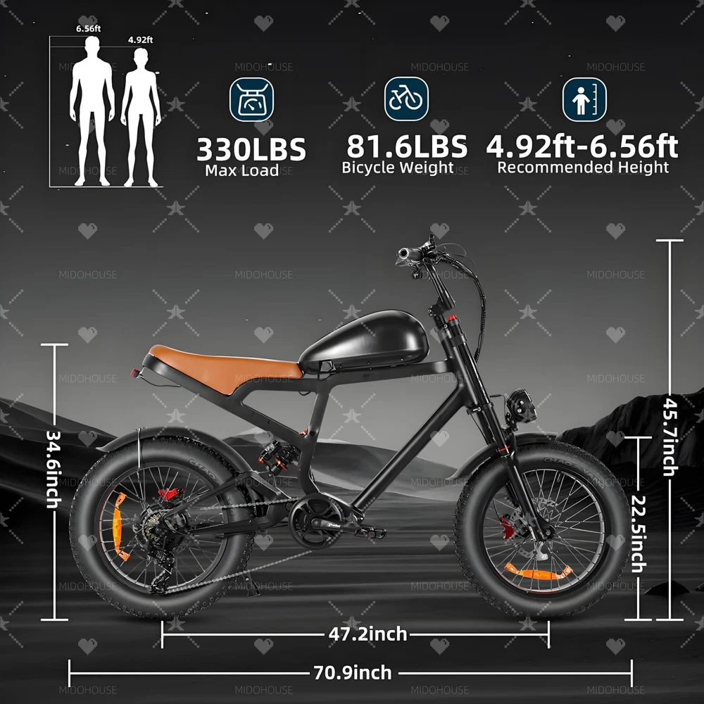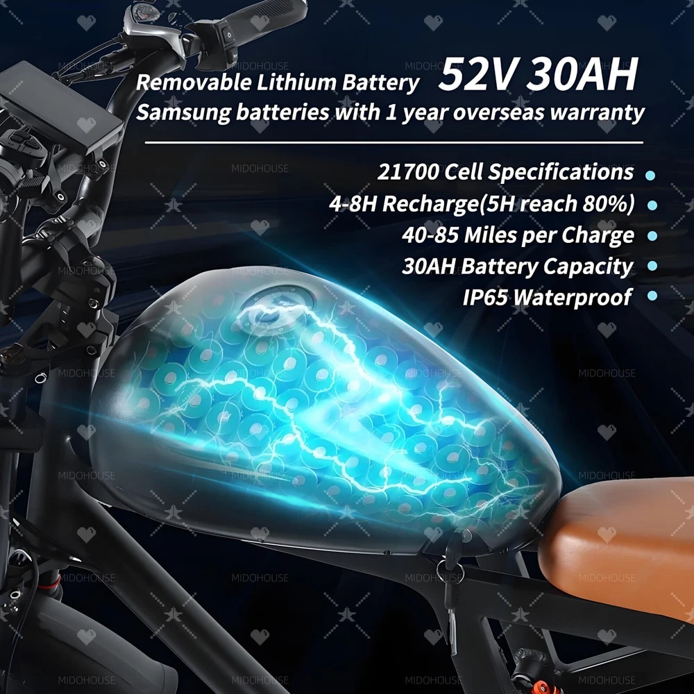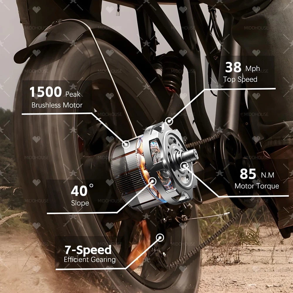 $ 475.21500W Electric Bike for Adults 85 Mile Range 38MPH 20 Fat Tire Off-Road Mountain Ebike