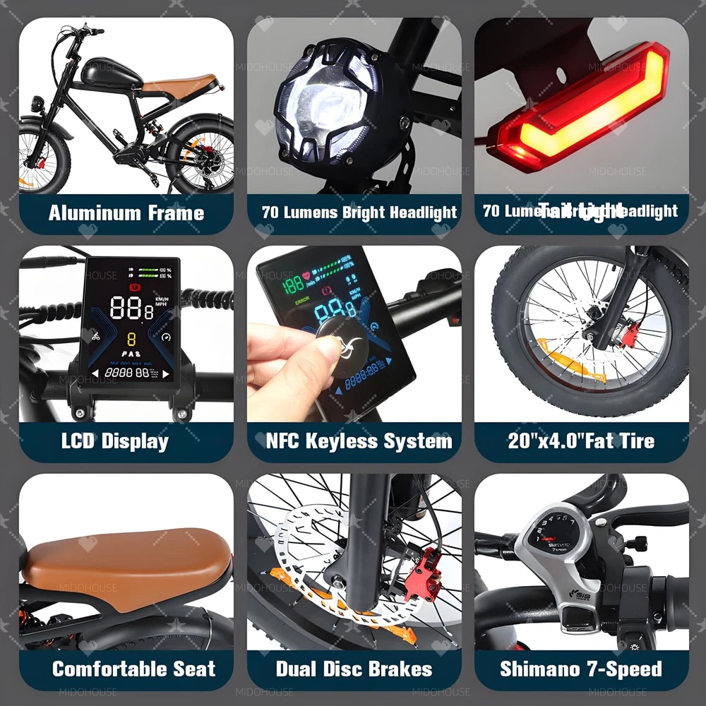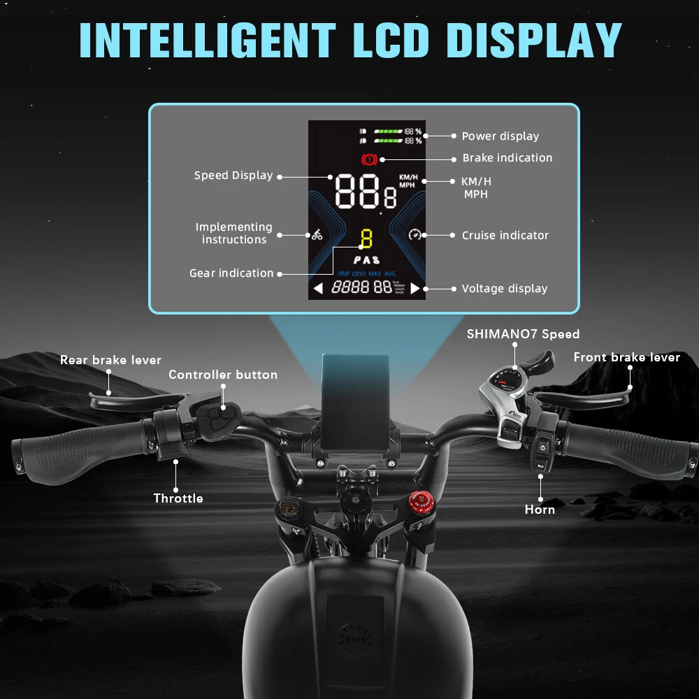 Store Categories Store Categories LED Work Light LED Light Bar LED Headlight LED Whip Light Led Fog Light Front&rear Bumpers Mount Bracket Home & Garden Children Toy discount items Business & Industrial E-bike UTV Accessories Other Features: Frame: Aluminum alloy frame Tire size: Zhengxin 20 * 4.0 fat tire Speed requirement: maximum speed=34.5MPH (instrument display shows 38MPH) 1st gear speed control 10 miles per hour; 2-speed control at 15 miles per hour; 3-speed control at 20 miles per hour; 4-speed control at 25 miles per hour; 5-speed speed control with maximum output Battery: Samsung battery 52V 19.2AH (actual parameters) Labeling parameters 30AH Motor: Rear mounted motor [1500W (actual parameter)] Labeling 1500W Instrument: [Mid mounted color screen large instrument] with NFC system and USB charging port Shock absorption: [Front fork double shoulder with self-locking shock absorber (black), rear simulated hydraulic shock absorber * 1] Brake: Hydraulic disc brake caliper with black color Headlights: 5.75-inch motorcycle light+tail light (without steering) Wheel hub: spoke wheel Pedal: Aluminum alloy pedal Transmission: [Ximano 7-speed] Package: 1 X Electric Bicycle with Battery 1x battery charger The item is UL 2849 certified Payment Shipping Returns Contact us Feedback Payment We only accept payment via eBay by PAYPAL . Item will be shipped out within 24-48 hours after payment completed. Please make sure your eBay address is correct before you pay. All the unpaid case will automatically opened after 4 days because the ebay final value charge of the transaction. Shipping United States Shipped by USPS/UPS/Fedex , usually takes 3-7 working days to complete delivery. Package will be sent out within 24-48 hours after the pament is cleared. Pick-up is unsupported service. We will not be responsible for any delivery failure due to unclear address. Delivery is not available on weekends, public holidays or after business hours. Returns We will accept returns or refund or exchange if they are unused and unmarked within 60 days . If you received wrong of defective products, please take photos and contact us to confirm. We must protect your interest as promsied. Remember to contact us via eBay message firstly. Please don't open the return request. Thanks in advance! Contact us Office Opening Times: Monday to Friday-9:00AM-18:00PM Beijing Time. We do our best to respond within 12-24 hrs. If no response within 24 hrs, please check the spam in your mail box. Ask us about bulk discounts if you want to buy 3 or more. Our store is good ebay seller and we are renowned auto suppliers seller in China who had earned the highest feedback on high quality we have factory in HongKong. Our Company is a Branch company that of a manufacturer which producing the lighting equipment and accessories for vehicles. We move and in charge our main business in E-commerce on eBay nowadays. Feedback We apprecaite your business and strived to improve our customer service and our commitment to quality. We will leave a postive feedback immediately after payment is received. We appreciate a positive feedback as much as you do. Please do NOT leave negative or neutral feedback. If for some reason there is any issue with the purchase, please contact us prior to leaving feedback, and we will be glad to work with you to have it resolved.