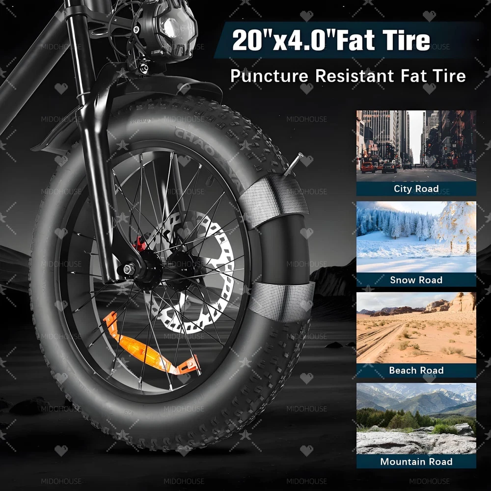$ 633.0720" Fat Tire Electric Bike 1000W 38MPH 48V 30AH Mountain Ebike for Adults