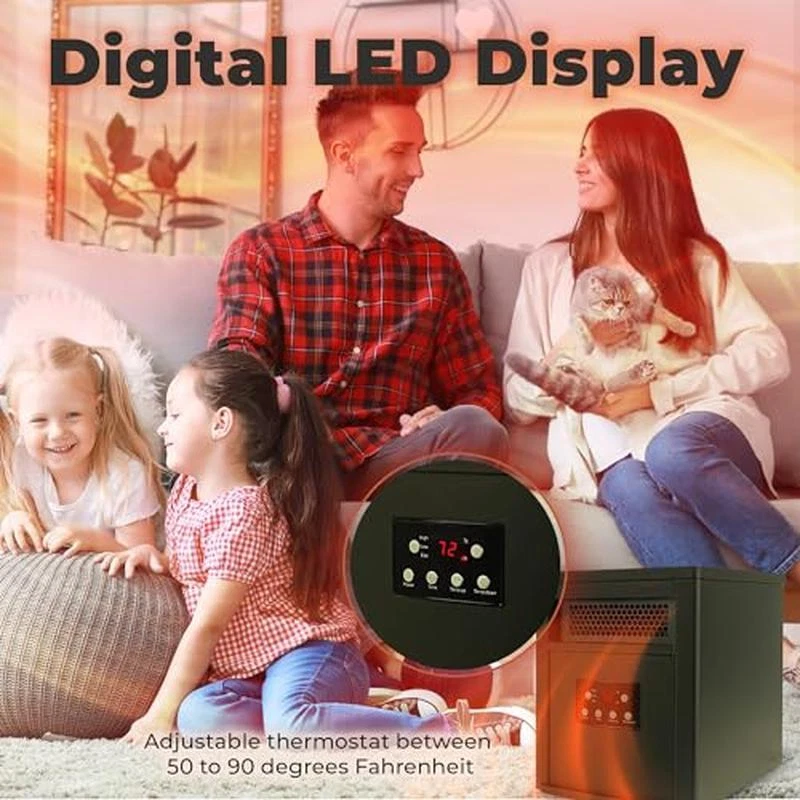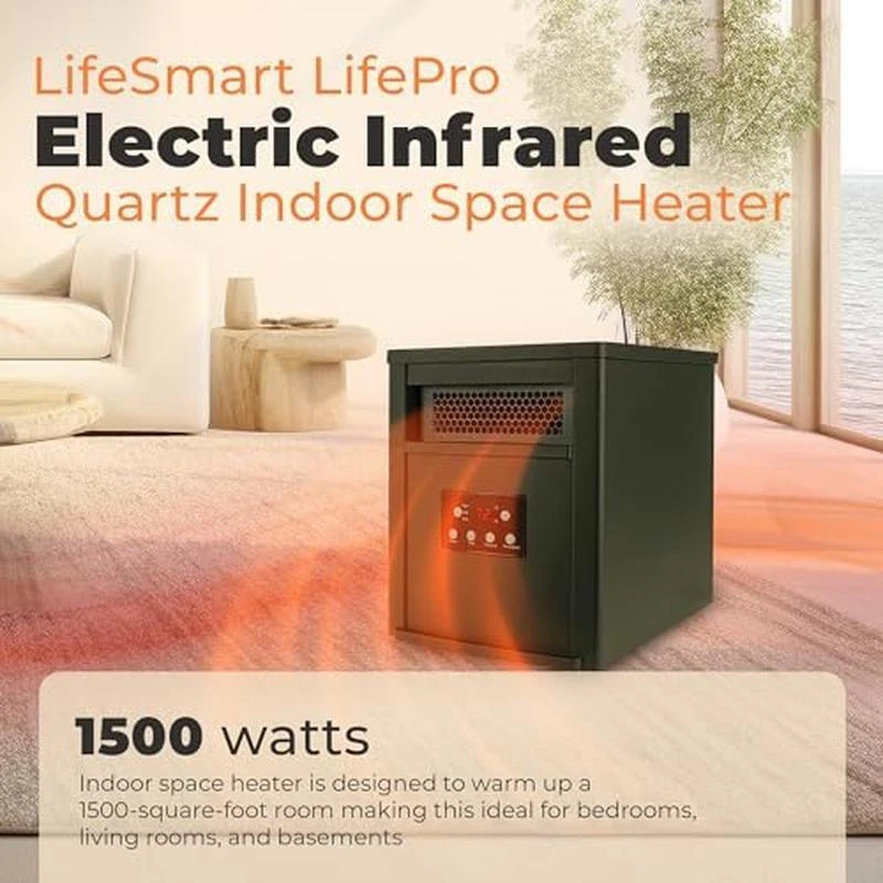 You may also like 9000 BTU Liquid Propane Heater Portable Emergency Heat Camping Hunting Outdoor 89.67 USD 94.39 USD Free shipping 5% off 1500W Space Heater Ceramic Remote Quiet Auto-off Timer Widespre Oscillation New 80.7 USD 84.95 USD Free shipping 5% off 200W Radiant Chicken Coop Heater W/ Remote Control Safety Temperature Adjustment 55.74 USD 58.67 USD Free shipping 5% off Ceiling Mounted Electric Heater 1500W Quartz Radiant W/ Work Light 5 Settings US 85.49 USD 89.99 USD Free shipping 5% off Double Tank Connection Kit W/ 30in Hose Brass Tee Bulk Tank Applications New 53.44 USD 56.25 USD Free shipping 5% off About this item Heater for Indoor Spaces: Indoor space heater is crafted for heating a 1500-square-foot space, making it well-suited for bedrooms, living rooms, and basements Easily Handleable: Designed with 6 regular infrared tube elements and metal casters, allowing you to effortlessly move this electric indoor heater to any location Variable Heat Options: Incorporates 3 adjustable heat power settings—high, low, and eco—allowing you to customize the warmth to your preference; Use the remote control to adjust temperatures and timers remotely Tailorable Features: programmable feature enables you to schedule a personalized start time and incorporates a tip-over safety function, ensuring a warm wake-up experience in the morning Product Details: Built with a digital LED display with an adjustable thermostat between 50 to 90 degrees Fahrenheit; Dimensions long 16 by wide 13. 125 by tall 16. 5 inches, available in black color Brand:LIFESMART GLOBAL Special Feature:Remote Control Color:Black Form Factor:Cabinet Indoor/Outdoor Usage:Indoor Power Source:Corded Electric Heating Method:Radiant You may also like Baby Play Yard W/ Infant Bassinet Removable Compact Foldable Portable Carry Bag 71.73 USD 75.5 USD Free shipping 5% off 20 V Cordless 1/4 In Impact Driver W/ Battery Bits Charger Carrying Bag Compact 65.4 USD 68.84 USD Free shipping 5% off Hand Mixer 3 Speed Food Mixing Dishwasher Safe Compact Lightweight Kitchen New 44.64 USD 46.99 USD Free shipping 5% off 400 W Countertop Mini Juicer Machine W/ Feed Chute Mixer Fruit Powerful Silver 51.05 USD 53.74 USD Free shipping 5% off 2-In-1 192 In Super Wide Baby Gate Play Yard Durable Ages 6 To 24 Months Plastic 76.85 USD 80.89 USD Free shipping 5% off 2 Pack Dining Chair Sturdy Seating Armless Kitchen Dining Room Natural Pine New 139.65 USD 147.0 USD Free shipping 5% off Reversible Stroller Storage Basket Canopy Lightweight Compact Self-Standing New 148.2 USD 156.0 USD Free shipping 5% off Flavored Coffee Single Serve K-Cups Variety Pack Sampler Medium Roast 20 Count 25.01 USD 26.33 USD Free shipping 5% off 48 QT 76 Cans Ice Chest Ice Box Hard Sided Cooler Beverage Camping Outdoor Blue 31.94 USD 33.62 USD Free shipping 5% off 4 Drawer Garage Cabinet Storage Sturdy Organizer Basement Closet Plastic Black 99.75 USD 105.0 USD Free shipping 5% off 16" Oscillating Adjustable Height Pedestal Fan 3 Speeds Durable Homes Offices US 38.34 USD 40.36 USD Free shipping 5% off Countertop Air Fry 4 Slice Toaster Oven 5 Cooking Functions 2 Control Knobs New 51.16 USD 53.85 USD Free shipping 5% off