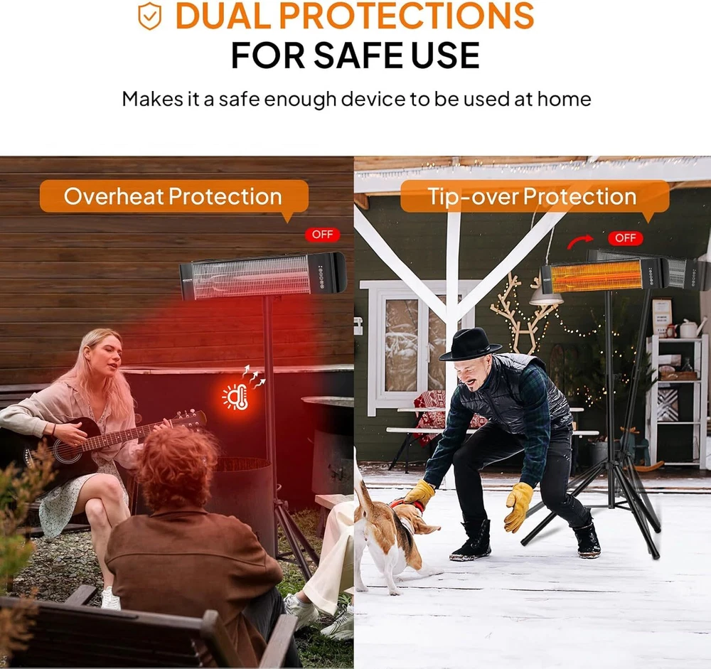 You may also like Wall-Mounted Electric Heater Patio Infrared Heater with Remote Control Outdoor 138.33 USD 145.61 USD Free shipping 5% off 1500W Outdoor Electric Heater, Patio Freestanding/Wall-mounted Heater with Remote Control, 12H Timer, Adjustable Heights, 3 Modes, 3s Instant Heating for Indoor Outdoor Backyard Garage Special Feature Fast Heating, Remote Control, Overheat Protection Color Black Form Factor Tower Indoor/Outdoor Usage Indoor 🔥 High-Efficiency Electric Patio Heater: Adopting infrared radiation heating technology, the 1500W infrared heater provides instant and quiet heating with three power modes to choose from (low / mid / high). The carbon tube design offers environmentally efficient heating with a lifespan of up to 50,000 hours 🔥 Indoor and Outdoor Heater: The outdoor heater efficiently heats up your patio during cold winter in just 3 seconds. The power will be immediately shut off when it overheats. It is fanless and noiseless. Perfect for gazebos, patios, outdoor cafes, restaurants, workshops, and any other indoor or outdoor living space 🔥 Easy to Use & Remote Control: There are two ways to operate the heater, manually and with a remote control. Simply touch the panel to turn it on/off and set the 0-12 hour timer. The remote control has a range of up to 10 feet and offers the same functions. When using the electric patio heater at night, you can control and set the timer remotely, saving electricity and avoiding the hassle of getting up. A versatile and convenient patio heater 🔥 Easy Dual Installation: This heater not only can be mounted on walls ( not ceiling), but also comes with an adjustable tripod stand, which can suit your different purpose and budget. It is equipped with a 45° adjustable heating angle, you can adjust the position according to daily needs Shoe Bench with Cushion Padded Seat Entryway Bench 9 Compartments Bedroom Brown 67.92 USD 71.49 USD Free shipping 5% off Brisbane Nursery Glider Ottoman Sets Glider Recliner Nursery Rocking Chair Chair 186.48 USD 196.29 USD Free shipping 5% off 4.5" Raised Toilet Seat with Handles Toilet Seat Riser Senior with Secure Hinges 93.85 USD 98.79 USD Free shipping 5% off Farmhouse End Table with Charging Station Drawer Narrow Side Table Living Room 156.84 USD 165.09 USD Free shipping 5% off 22-Gallon Small Deck Box Lightweight Resin Indoor/Outdoor Storage Container Seat 104.73 USD 110.24 USD Free shipping 5% off Squirrel Buster Plus Squirrel-proof Bird Feeder w/Cardinal Ring 6 Feeding Ports 146.76 USD 154.48 USD Free shipping 5% off 45-inch Large Heavy Duty Pet Dog Grooming Table W/ Adjustable Overhead Arm Tray 160.54 USD 168.99 USD Free shipping 5% off 47" Computer Desk with Keyboard Tray and Storage Drawers Home Office Workstation 185.24 USD 194.99 USD Free shipping 5% off Gamer Chairs for Adults Video Game Chair wth Footrest Headrest Computer Chair 160.52 USD 168.97 USD Free shipping 5% off 32-inch Tall Dog Gate Extra Wide Pet Gate for Dogs Indoor Foldable Wire Fence 106.2 USD 111.79 USD Free shipping 5% off 16" x 60" Frameless Full-Length Rectangle Mirror 1" Beveled Edge Wall Mirror 86.39 USD 90.94 USD Free shipping 5% off X6670 (2-Pack) Healthy Climate 16" x 25" x 5" OEM HCF16-11 Air Filter, MERV 11 83.83 USD 88.24 USD Free shipping 5% off