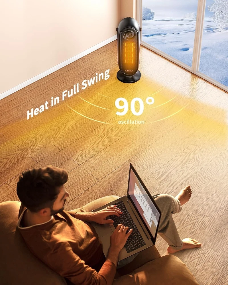1500W Portable Electric Heater - Fast Heating with 90° Oscillation & Remote