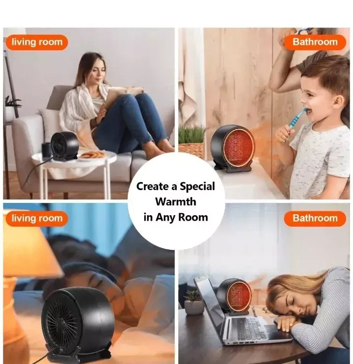Feature : Fast Heating: Energy-efficient PTC ceramic heating elements work in tandem with a fan to rapidly heat small spaces up to 215sq. ft. thanks to the 1500W power 2 Heat Settings: Features 2 levels of heat, including low heat “I” that heats at 900 watts and high heat “II” that heats faster and hotter at 1500 watts, so you can select what you need without worrying about wasting heat; easily control the temperature by rotating the knob for instant warmthTriple Protection Design: V-0 flame retardant ABS materials, built-in tip-over protection and overheat protection ensure that the electric space heater operates safely; the power indicator stays on while the space heater is running Compact & Portable: At only 9.1 inches tall with an 8.0in x 6.9in footprint, this compact ceramic heater takes up minimal space and is perfect for tabletop or floor placement; a hidden carrying handle makes moving from room to room effortless 20% Wider Heating Coverage: Featuring an air velocity of 8.4ft/s – surpassing the standard 5.6ft/s of other personal heaters – this Paris-Rhône heater ensures more powerful heating; also, the 9° tilted angle increases the heat distribution to warm your surroundings evenly Specification: Electric Heater Type: Fan Heater Use: Bedroom,Living Room Power: 1500W Installation: Freestanding Model Number: Electric Heaters Voltage (V): 110V Material: PP+ Electronic Components Rated Voltage: 110v Power Supply Mode: Direct Plug-in, PTC Heating Note: Due to the different monitor and light effect, the actual color of the item might be slightly different from the color showed on the pictures. Thank you! Please allow 1-2cm measuring deviation due to manual measurement. Included: 1 x Heater