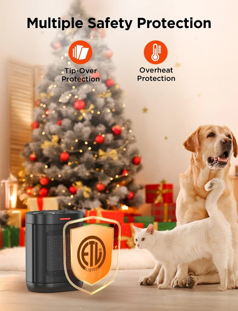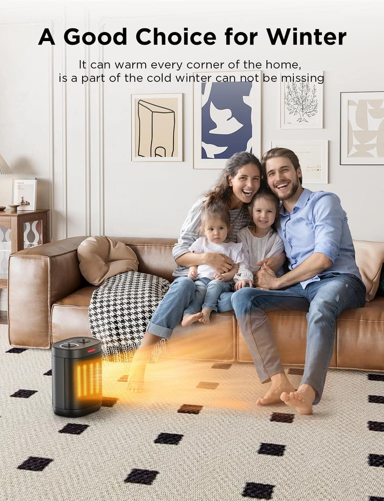 Powerful Heating Technology: The electric heater adopts advanced PTC ceramic heating technology, which can make you feel warm in two seconds, and if you feel overheated you can use the adjustable thermostat, which is convenient for you to feel the most suitable temperature. Reliable Safety Protection System: ETL certified ceramic electric heater is safer in use, when the heater is overheated, it will automatically cut off the power, and if the electric heater is knocked over accidentally it will immediately turn off the electric heater to eliminate safety hazards. Multiple Mode Selection: The space heater has three different function modes: Ⅰ 1500 watt high heat, Ⅱ 900 watt low heat, Ⅲ fan only, you can choose the corresponding mode according to your needs and enjoy the comfortable experience it brings to you. The Best Size for You: Heater for indoor use size is 6.29x4.72x8.78 inch, you can put it on your desk without taking up space. There is a handle on the back of the heater, so you can easily lift the heater with one hand and change its position to bring warmth to all corners of your home. Winter Essential: This powerful portable heater is ideal for every family in winter. Compared with the traditional heating system, it is more environmentally friendly and energy-saving in the heating process. It's also a great gift to give to family and friends.