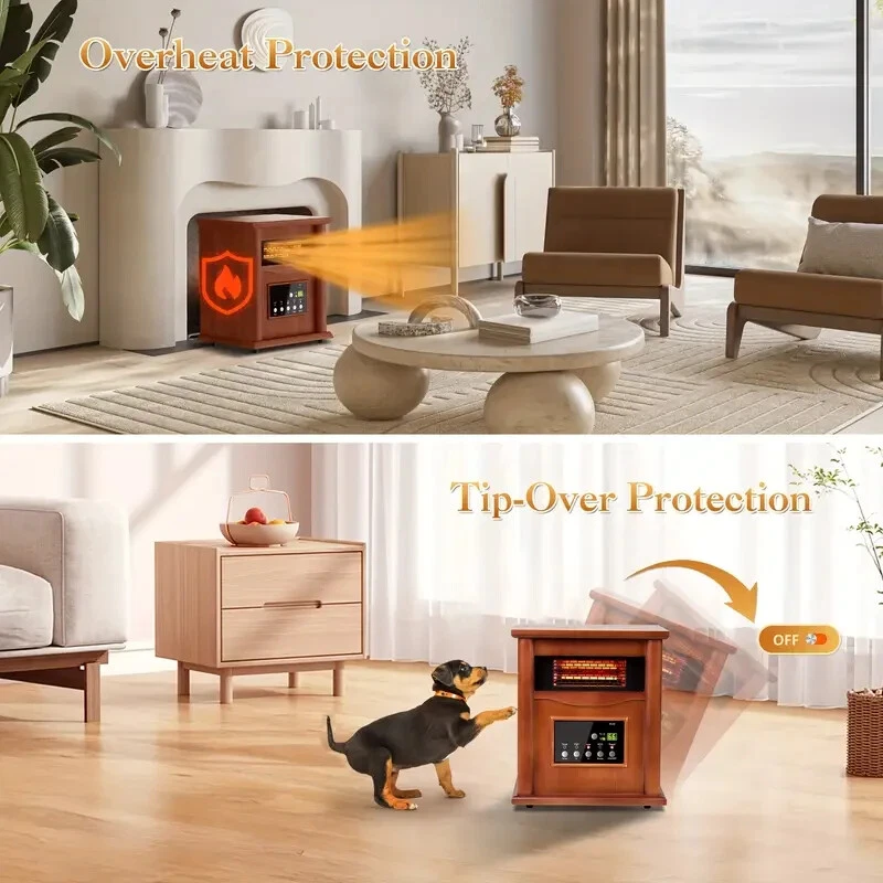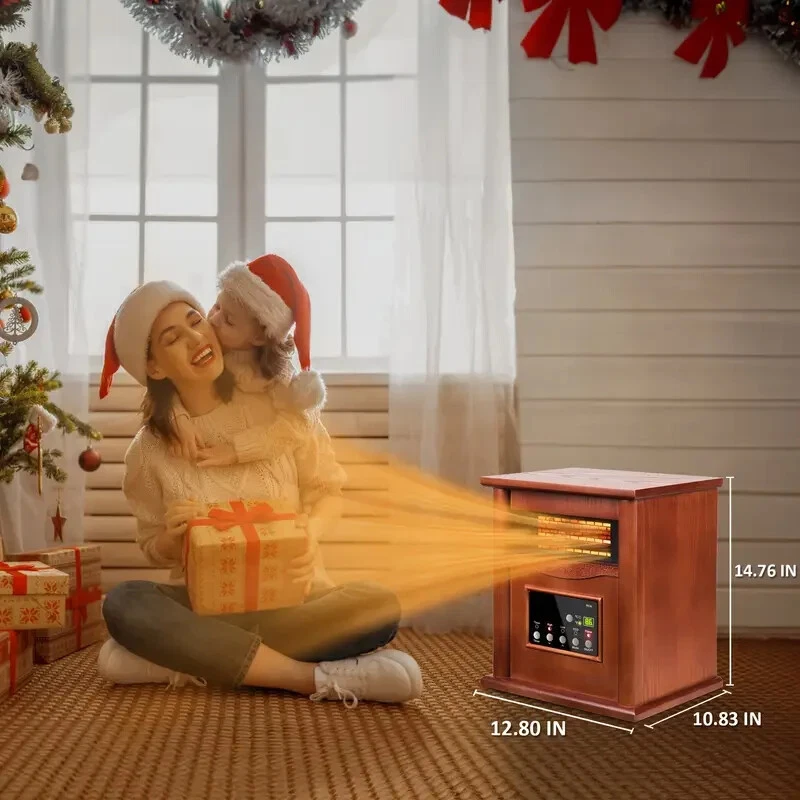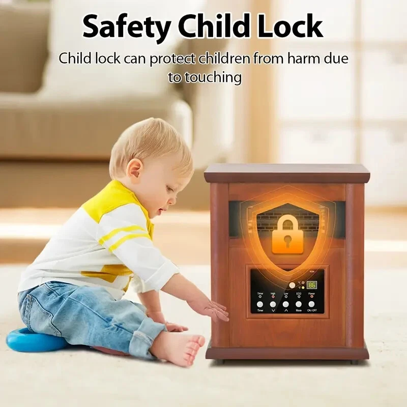 1500W Space Heater With Wood Frame, Remote Control, ECO, Child Lock Protection