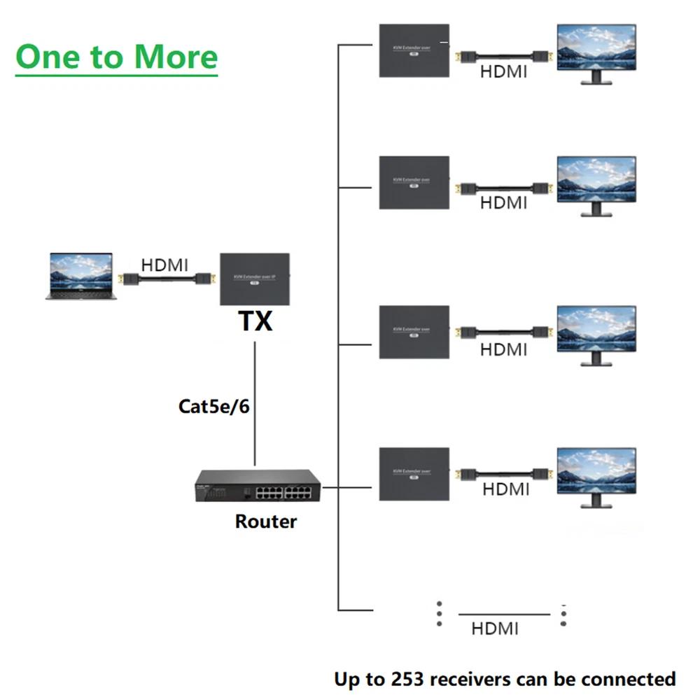 Product Description 150M HDMI KVM Extender IP Cat5e/6 Cable HDMI USB Extender PC Switch RX TX 150M HDMI KVM Extender over Enternet Cat5e/6 Cable HDMI USB Extender Support one TX to many RX via Network Switch for Mouse keyboard Specifications: Support HDTV Resolutions: 480p, 720p, 1080p Support max up to Resolution: 1920*1080p@60Hz Transmits HDMI video and audio signals up to 150m over a single CAT6 cable Support USB keyboard and mouse Compression encoding: H.264 Compliance with HDMI 1.3 and HDCP 1.2 standard USB port: Connect to PC USB K/M PORT: Connect USB keyboard and mouse Power Supply: DC5-12V Power dissipation: MAX 3W Size(L-W-H): 94*71*26mm Features: 1. The high-definition video source transmits HDvideo signal through the network cable up to 150m 2. Support video resolution max up to 1920*1080p@60Hz 3. Compliance with HDMI 1.3 and HDCP 1.2 standard 4. Support no-delay and lossless image/video compress, and using H.264 compression encoding technology to effectively guarantee the quality of video transmission 5. Supports USB KVM function that can long-distance use keyboard or mouse controlled 6. Support over Ethernet Physical Layer Protocol, and oneinputto multiple outputs application with Ethernetswitch 7. High compatibility, can auto-match source and display device 8. Built-in automatic adjustment system, make the image smooth, clear and stable 9. Simple to install, plug and play Package contents: 1x HDMI transmitter 1x HDMI receiver 1x USB A - USB A Cable 2x Power adapter 1x User manual If you have any questions, please feel free to contact us via ebay. We usually respond within 24 hours. Payment Shipping Returns Contact Us We accept all verified payments from ebay. Orders will be shipped after receiving cleared payment. Payment due within 7 days after auction ends and for buy it now listings. We ship most of our orders within 24 hours, and may up to 48 hours for. If you want faster shipping way. Please contact us before making payment. Sometimes due to problems with our transportation company system, your shipping information may be delayed to update. We recommend that you try again after 3-4 days. If you still haven't checked the shipping information, you can contact us by ebay message. Always believe we can figure things out with communication, if it comes to return, the pacakge must be intact and the same as you receive. If you have any questions, please feel free to email our service specialists 24 Hours a Day, 7 Days a Week. We will reply you ASAP. Return/refund is accepted within 30 days after the buyer receives the item. NO exchange will be accepted after 30 days from the date when the item is received. Please contact us first before returning your product!!! If you have any questions, our Customer Service staffs welcome you to email us. We strive to answer all questions and resolve any problems as quickly as possible. You can contact us 7*24, we will reply at the first time, and we will surely solve your problems. Note: 1.We try our best to reply to your emails as soon as possible, however, due to high volume of daily incoming emails and time zone difference, we may not be able to reply your emails immediately. Please allow 1 business days for us to response. If you do not receive any reply from us, please check your email ensuring your mailbox has not reached full size. 2.Due to some ISP SPAM filter settings, you may not be able to receive our replies; if you have problems receiving our emails, you may need to use a different email account to contact us. 3.Please give us the opportunity to resolve any problem. We understand the concerns and frustrations you might have, and will try our best to resolve the issues. Please email us before leaving any negative feedback or open any dispute on PayPal. 4.We care about our valued customers, and will always try to help you. So if you have any problems, please e-mail us immediately. Payment We accept all verified payments from ebay. Orders will be shipped after receiving cleared payment. Payment due within 7 days after auction ends and for buy it now listings. Shipping We ship most of our orders within 24 hours, and may up to 48 hours for. If you want faster shipping way. Please contact us before making payment. Sometimes due to problems with our transportation company system, your shipping information may be delayed to update. We recommend that you try again after 3-4 days. If you still haven't checked the shipping information, you can contact us by ebay message. Returns Always believe we can figure things out with communication, if it comes to return, the pacakge must be intact and the same as you receive. If you have any questions, please feel free to email our service specialists 24 Hours a Day, 7 Days a Week. We will reply you ASAP. Return/refund is accepted within 30 days after the buyer receives the item. NO exchange will be accepted after 30 days from the date when the item is received. Please contact us first before returning your product!!! Contact Us If you have any questions, our Customer Service staffs welcome you to email us. We strive to answer all questions and resolve any problems as quickly as possible. You can contact us 7*24, we will reply at the first time, and we will surely solve your problems. Note: 1.We try our best to reply to your emails as soon as possible, however, due to high volume of daily incoming emails and time zone difference, we may not be able to reply your emails immediately. Please allow 1 business days for us to response. If you do not receive any reply from us, please check your email ensuring your mailbox has not reached full size. 2.Due to some ISP SPAM filter settings, you may not be able to receive our replies; if you have problems receiving our emails, you may need to use a different email account to contact us. 3.Please give us the opportunity to resolve any problem. We understand the concerns and frustrations you might have, and will try our best to resolve the issues. Please email 