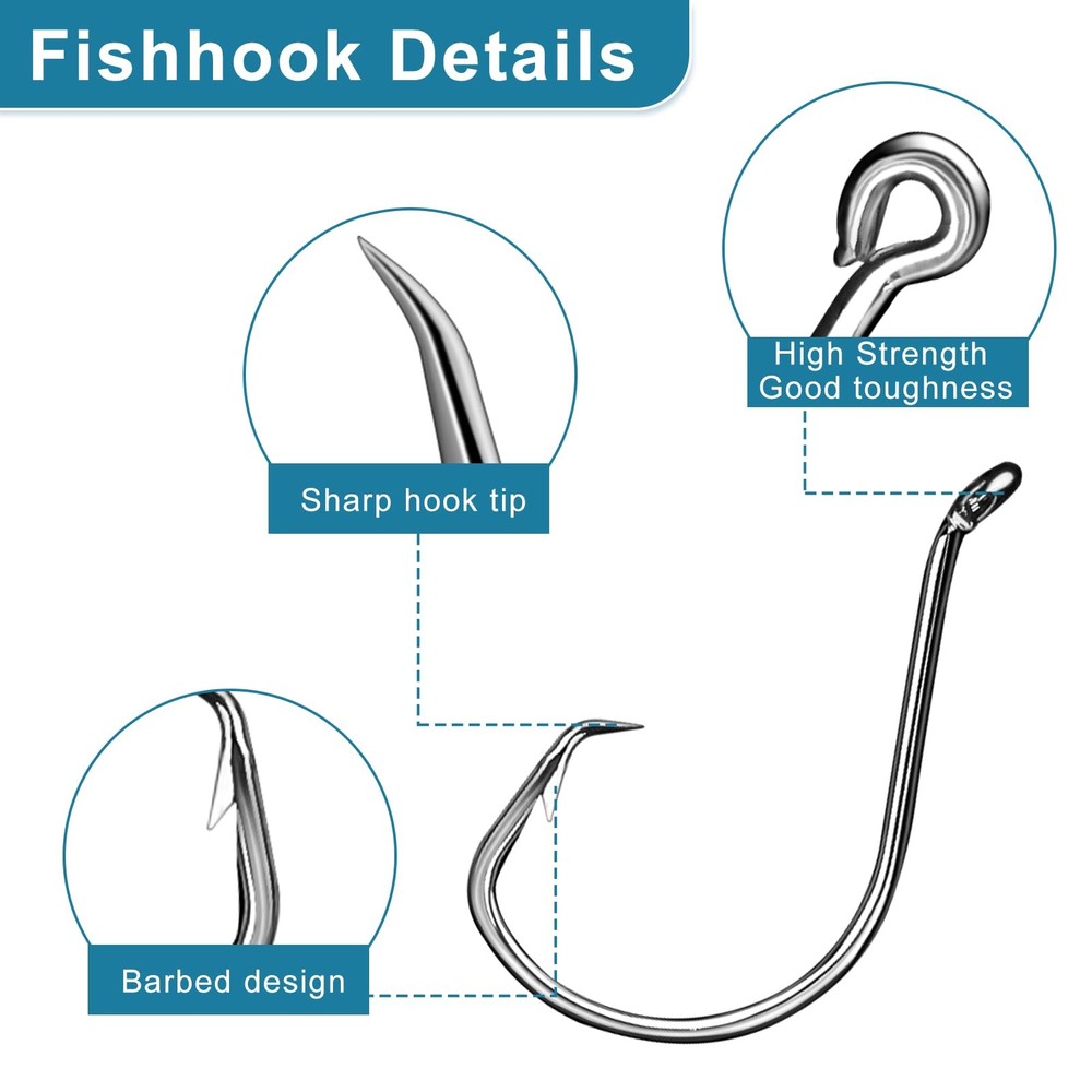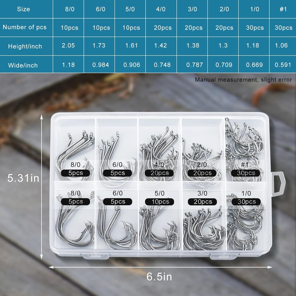150PCS Circle Hooks, High Carbon Steel Fishing Hooks, Sizes #1 to 8/0