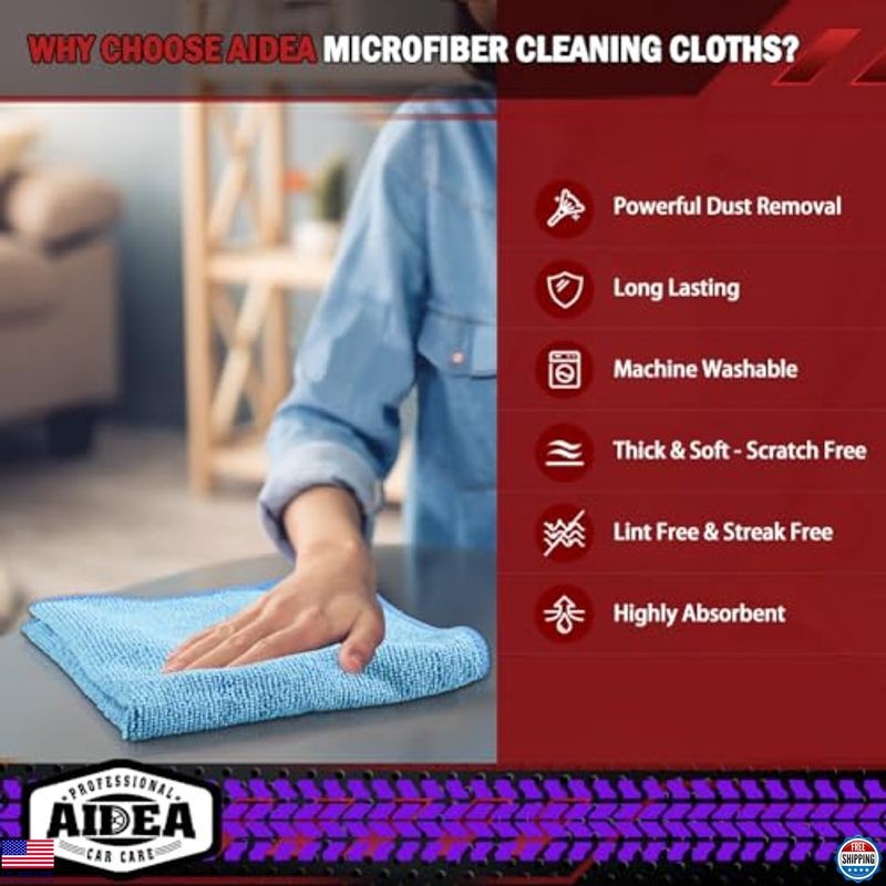AIDEA Microfiber Cleaning Cloth Blue,150PK, Shop Rags, Microfiber Towels for Cars, Dusting Cloth Lint Free Rags, Absorbent Towels for SUVs, House, Kitchen, Mechanic, Workshops, 12"×12" Description Discover the ultimate cleaning solution with our versatile Microfiber Cleaning Cloths, available in convenient packs of 50, 100, or even 600! Perfect for tackling dust, spills, and surfaces with ease, these eco-friendly cloths offer exceptional absorbency and durability. Join thousands of satisfied customers who have rated our products 4.4 stars and above, and elevate your cleaning routine today! Product reference: B0DHVFVWBH. Features Super Absorbent: Experience the excellent quality of AIDEA all-purpose microfiber cleaning cloths; made from 87% polyester and 13% polyamide; offering exceptional absorbency and quickly wicking away water to keep you dry; ideal for swiftly and safely removing dirt, grime, and liquids Soft & Lint-Free: Our ultra-soft and non-abrasive microfiber towels ensure a scratch-free cleaning experience on surfaces, paint, glass, and coatings; effective in tackling the toughest grease, grime, and dirt; suitable for cleaning kitchens or cars; leaving surfaces shiny and pristine Remarkable Durability and Reusability: These microfiber dusting cloths can be washed and reused hundreds of times; resistant to shrinking, falling apart, or losing cleaning power; designed for long-term use Easy Care and Use: Available in five different colors for easy color coding of cleaning tasks; designed with premium fabrics that prevent scratching; ideal for polishing and drying without damaging surfaces; keeps your car shiny and intact Versatile: AIDEA cleaning rags are perfect for a variety of tasks; effective with just plain water; suitable for use in kitchens, bathrooms, and for dusting; an essential tool for any cleaning routine Shipping Free & Fast Shipping: We offer free shipping to most of the USA with a normal delivery time of 3-7 days. However, due to the current situation, additional delivery time (up to 3 weeks) may be required for some items. Alternative Carriers: We may use alternative carriers (e.g., USPS, FedEx, UPS) to ensure your package arrives safely and on time. Due to the use of multiple carriers, we are unable to provide a tracking number automatically. Handling Time: Orders are processed and shipped within 1-2 business days of receiving cleared payment. Shipping Restrictions: Shipping to Alaska, Hawaii, Puerto Rico, Guam, and other US territories may incur shipping charges or delivery restrictions. Please contact us before ordering, or your order can be refunded/cancelled. State Restrictions: Certain items may not be shipped to California due to state regulations. Contact for Tracking Updates: If you require tracking updates or have any concerns about the delivery of your order, please feel free to contact us, and we will be happy to assist you. Return Policy 30-Day Hassle-Free Returns: If you are not completely satisfied with your purchase, you can return the item for free within 30 days of receiving it for a full refund or exchange. Easy Return Process: Contact us, and we will provide you with a prepaid return shipping label and detailed instructions. No Restocking Fee: There are no restocking fees for returns. However, the buyer is responsible for return shipping costs if the return is not due to a seller's error. Refund Processing: Refunds will be processed within 1 business day of receiving the returned item in its original condition. Payment We accept all major credit cards, PayPal, and Pay for your convenience...