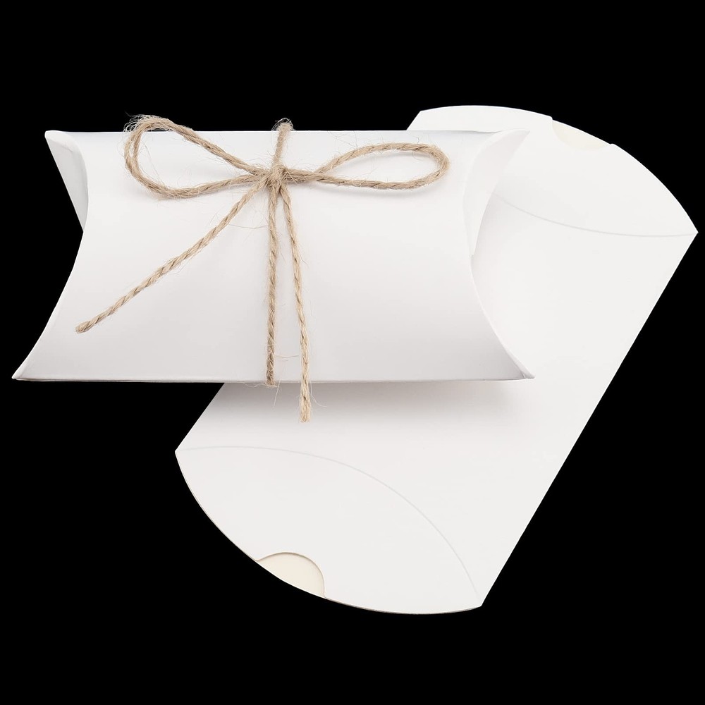 About Us has been dedicated to producing and designing kraft paper gift boxes and various other related products. Our primary goal is to provide you with better products and the best customer satisfaction. We try our best to provide practical and economical products to make you enjoy the pleasant shopping experience. Why Choosing ? Made of premium kraft paper, which are recyclable and environmentally friendly. These 250 gsm pillow boxes are thick enough to hold the appropriate amount of items. You can try to decorate candy treat boxes with beautiful flowers, cute ink stamps, personalized stickers or write graffiti on the surface to make them look adorable. The package comes with 150 white pillow boxes and 150 jute twines(the length of each twine is 1.7 feet). This quantity is sufficient for long-term packaging and storage needs. These 5.1x3.5 inches pillow boxes are suitable for storing candies, chocolates, mints or any other small items. You can also use them as trinket packing boxes and small craft storage boxes. Specification: Material: Kraft Paper Box Size : 5.1 x 3.5 inch(Unfolded Size) Twine Length: 1.7 ft Color: white Packing Includes Pillow Candy Boxes x 150 Jute Twines x 150 PREMIUM MATERIAL - These pillow candy boxes are made of high quality white kraft paper. It is degradable and recyclable, which is environmentally friendly product. With a charming rustic look and a white smooth surface, this box is ideal for wrapping and storage. EASY TO FOLD - These kraft pillow boxes with jute twines are completely flat and neat when shipped. Therefore they are easy to fold. The creases on the box were clearly visible. You just fold the box along the crease and it can be used normally. EASY TO DECORATE - These party favor boxes have a blank surface, which makes it easy to paint, doodle and draw. Adding some appropriate decorations to the pillow boxes will help the other partner quickly perceive your intentions. Finally, tie them with jute twine, and a perfect gift is complete. WIDELY USED - These kraft paper gift boxes are suitable for many occasions. They can cater to various festivals and celebrations. They can be used at weddings, baby showers, birthday parties, anniversaries, Halloween, children's day, parent-child events. SATISFACTORY SHOPPING EXPERIENCE - If you have any dissatisfaction with the pillow boxes for gifts, you will get a within 30 days. If you have any questions about the product, please feel free to contact us, we will provide you with a satisfactory solution.