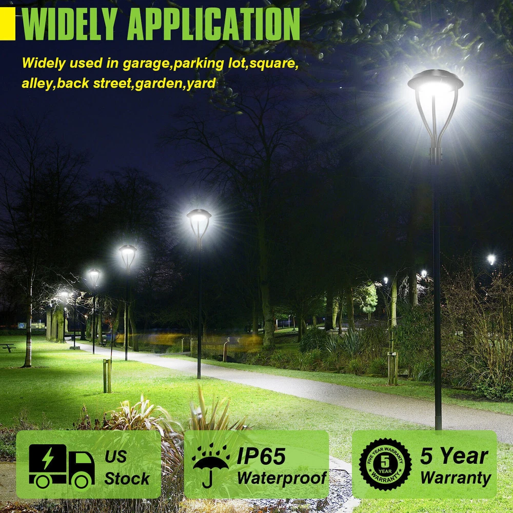 Product Description 150W Outdoor Street Garden Pathway Yard Parking lot Light LED Post Pole Top Lamp Light Up Larger Area - The 150w light post bring 21000Lm with SMD3030 chips, up to 140lm/watt, AC 100-277V universal voltage and 120°beam angle. 5000K color temperature of lighting is a nice choice for street light illumination. Anti-shock, anti-moisture, no glare, no strobe light, no ghosting, protecting your eyes. Excellent Performance - High power factor >0.9, more than 50000hours lifespan, reduce your electricity consumption, save your electronic bill. Provides a continuous, efficient outdoor lighting environment. Commercial Grade Material - The DLC/ETL Listed post pole light fixture made of die-casting aluminum body + protective glass cover. The scientific design helps the exterior light post top to dissipate better, achieve the best use of the led lighting post. IP65 waterproof for drying, wet environment, sandstorms, snowstorms, and harsh weather conditions. Wide Application - The circular post top design give the lamp a uniform brightness and can be applied to a variety of outdoor scences, such as pathway, street, front yard, city expressway, trunk/rustic road, factories, playground, school, garden, courtyard, parking lot, public park, walkway, exterior, driveway, store, farmyard or any other commercial and industrial area. Installation and Warranty - The pole mount of our post area light fits for a 2 3/8-inch OD tenon & less than or equal to 3 inch standard pole, very easy to install and transfor(Please see the video on the product page for more installation info). KUKUPPO offer you lasting safety and reliability backed by a 5-year warranty. For a bulk order, email us in advance to get a different offer. Specifications: Rated Wattage: 150W Luminous Flux: 21000Lm Color Temperature: 5000K Protection Grade: IP65 Material : Aluminum Body+Glass Cover Input Voltage : AC100-277V 50/60Hz Dimension: Dia 400x650 mm Base: 2 Pins Wire Power Factor: >90% Beam Angle : 120 degrees Average Lifetime : More than 50000 hours Flexible Installation The pole mount of our post area light fits for a 2 3/8-inch OD tenon & less than or equal to 3 inch standard pole, very easy to install and transfor Commercial Grade Material DLC/ETL Listed quality. Scientific design helps the exterior light post top to dissipate better, achieve the best use of the led lighting post. Durable Support Rod Made of thick aluminum, stable and strong, waterproof and rustproof. High performance quality provides with lasting safety and reliability. Ultra Bright LED Chips With SMD3030 chips, up to 140lm/watt. Anti-shock, anti-moisture, no glare, no strobe light, no ghosting, protecting your eyes. Kindly Note Please note that the light can not be used IN the water. Please confirm the wire connection is right while installing. About Us Payment Shipping Returns Contact Us SHENZHEN NUOGUAN TECHNOLOGY CO. LTD founded in 2010. We are high-technology comany specialized in manufacture Commercial and industrial LED light. Advanced production equipment and excellend R&D ability help us to combining service ,production sell together provide top-level products to our customers. 1. Payment is expected within 7 days of auction close. Or Unpaid Items will be forfeited per eBay . 2. Taxes may be applicable at checkout as states adopt new laws and regulations regarding sales tax collection. 1. We ONLY ship to USA . 2. Orders processed within 1-2 business day of payment verification. There’s no Delivery service or courier service on Saturdays, Sundays or Public Holidays. 3. We have 3 different warehouse in US,so due to stock status and time differences, we will choose to ship your item from our first available warehouse for fast delivery. 4. We offer Free Shipping within the Lower 48 states! All packages are sent via UPS or USPS.The delivery time for UPS Ground is typically 2-5 business days. We strive to ensure 100% satisfaction for each and every one of our customers. we offer a 30-day 100% money-back guarantee on all eBay orders. If your item isn't just as you wished, simply send it back to us and we'll refund or replace your item. Please note that all returns must be authorized by our Customer Service department. please contact us though message first if you have any problem. USA Warehouse. Fast shipping! We are appreciated your purchasing form our eBay store. Office Time: 9:30 - 18:30, Monday - Saturday (UTC+8) Please contact us with eBay Message. We will respond you within 24 hours on business day. About Us SHENZHEN NUOGUAN TECHNOLOGY CO. LTD founded in 2010. We are high-technology comany specialized in manufacture Commercial and industrial LED light. Advanced production equipment and excellend R&D ability help us to combining service ,production sell together provide top-level products to our customers. Payment 1. Payment is expected within 7 days of auction close. Or Unpaid Items will be forfeited per eBay . 2. Taxes may be applicable at checkout as states adopt new laws and regulations regarding sales tax collection. Shipping 1. We ONLY ship to USA . 2. Orders processed within 1-2 business day of payment verification. There’s no Delivery service or courier service on Saturdays, Sundays or Public Holidays. 3. We have 3 different warehouse in US,so due to stock status and time differences, we will choose to ship your item from our first available warehouse for fast delivery. 4. We offer Free Shipping within the Lower 48 states! All packages are sent via UPS or USPS.The delivery time for UPS Ground is typically 2-5 business days. Returns We strive to ensure 100% satisfaction for each and every one of our customers. we offer a 30-day 100% money-back guarantee on all eBay orders. If your item isn't just as you wished, simply send it back to us and we'll refund or replace your item. Please note that all returns must be authorized by our Customer Service department. please contact us though message first if you have any problem. Contact Us US