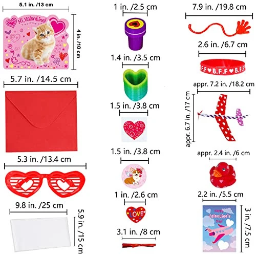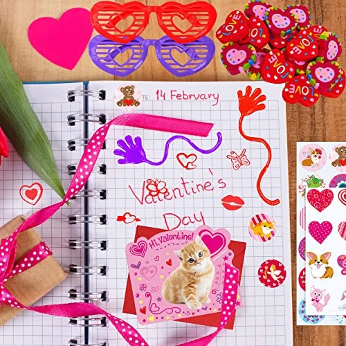 30 Days Return Policy Fast Delivery Trusted seller 152 Pcs Valentine's Day Stationery Toy Assortment Set Valentine Goodie Bag Stuffers Valentine Prizes Rewards Bulk for Kids Students Valentine Party Favors Treats School Classroom Gift Exchange Product Description Valentine's Day Stationery Toy Assortment Set: 8 pcs Valentine gliders, 8 pcs gift exchange cards, 8 pcs Valentine stampers, 8 pcs Valentine rubber ducks, 8 pcs Valentine rubber bracelets, 8 pcs Valentine shutter glasses, 8 pcs heart-shaped magic springs, 16 pcs heart erasers, 16 pcs Valentine sticky hands, 24 pcs scratch & sniff Valentine cards, 24 pcs self-seal envelopes, 8 Valentine temporary tattoo sheets (128 pcs), 8 Valentine sticker sheets (192 pcs), 24 clear plastic bags, 24 twist ties. Color & Designs: In bright Valentines colors of red, pink, purple, blue, white, yellow, and green, these Valentine toys for kids feature vibrant print and cute Valentine's Day sayings, including assorted heart patterns, dog, cat, rabbit, bear, frog, ladybird, butterfly, ice cream, flower, cupid, rose, lip prints, cupcake, gift box, heat balloon, love letter, plane, "I LOVE YOU", "You're My Sweet", "YOU ROCK", "love", "HAPPY VALENTINE'S DAY", "CUTIE PIE", "B.F.F", "XOXOXO", "Be Mine", "Kiss Me". Size: Valentine gliders: 7.2" long. Valentine stampers: 1" in diameter. Valentine rubber ducks: 2.3" wide. Valentine bracelets: 2.6" circ. Valentine shutter glasses: 5.2" long. Valentine magic springs: 1.3" in diameter. Valentine erasers: 1". Valentine sticky hands: 7.8" long. Gift exchange cards: 3" x 2.1". Scratch & sniff Valentine cards: 4" x 5.1". Valentine envelopes: 4.3" x 5.1". Valentine tattoos & Valentine stickers: 1.5" in diameter. Cellophane bags: 9.8" x 6". Twist ties: 3.1" long. Material: These assorted Valentine party favors for kids are made from foam, plastic, rubber, paper, vinyl, and cardstock. They are safe and non-toxic toys which have tons of fun, perfect to hand out as an alternative to candy Valentine's gifts for kids or give them out as Valentine's Day party favors. Fun and safe to use, this Valentine party favors set with great variety is perfect for many gifting occasions. Hand these cute toys out as an alternative to candy Valentines gifts for kids. Perfect for kids valentine crafts, kids Valentine's Day exchange, class Valentine's Day prizes, valentines goody bag stuffers, kids Valentine's Day party favors, valentines party pack, Valentine's Day school treats, valentines giveaway, birthday party favors and more. Shipping Returns Payment Shipping Shipping is FREE to all addresses other than APO/PO boxes in the lower 48 states. All our stock ships from US-based warehouses. Shipped via USPS or UPS (depending on location and package weight) Unless stated otherwise, all orders will ship within 24-72 hours of your payment being processed. Check our feedback to see the great reviews of FAST shipping we offer. Returns As our valued customer, we will do our best to make sure the product you receive arrives to you on time and as expected. If you are not satisfied with your purchase, please contact us within 30 days of receiving your order to process a return. Payment We currently accept payment via eBay managed payments only. Once payment is cleared, we will dispatch your shipment within 1-3 business days. Please refer to the "Shipping" tab for more information regarding shipping speed to your destination.