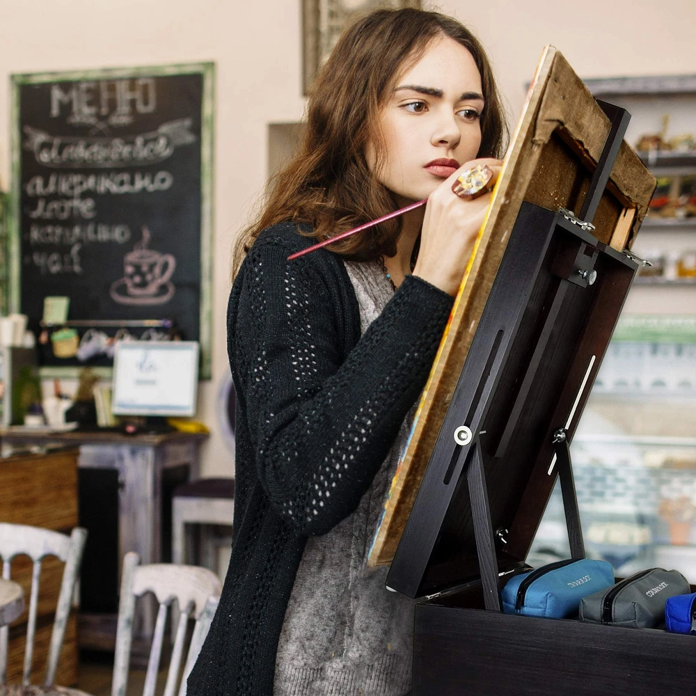 【Deluxe Drawing Sets with Paint】 For Adults, Kids, Teens & Beginners, this mixed media easel art kit is ideal for artists wanting to explore various art mediums ranging from acrylic, watercolor, and pastels to metallic pencils. 【The Sturdy 3 Drawers Wooden Storage Box】 Doubles As An Extendable Easel, with adjustable clips to set the desired angle and hold up to a 24-inch canvas. Inside the bottom drawers are moveable dividers, so you are free to organize your materials any way you like. 【High Quality & Non-toxic Painting, Drawing & Sketching Supplies】 Explore and discover your favorite art mediums. Whether you are painting in acrylic/watercolor, drawing with soft & oil pastels, or sketching with charcoal / colored pencils. All are eco-friendly and easy to use for creating fantastic drawing effects! 【A Variety Of Tools & Drawing Pads】 All the more reasons to own it! It is a good assortment for anyone to start creating. There are a watercolor pad and a drawing pad to give enough blank space to your wild raging creativity. The art supply kit includes a sharpener, paintbrushes, palette, painting knives, erasers, color wheel, viewfinder, watercolor brush pen, and more! 【The Artist's Ultimate Holiday Gift】 Presented in a three-draws deluxe wooden case full of assorted art mediums. It presents an impressively creative gift idea for birthdays, graduation, anniversary, rewards, Thanksgiving, and Christmas. Guaranteed quality with a 1-year free replacement warranty for any quality issue.