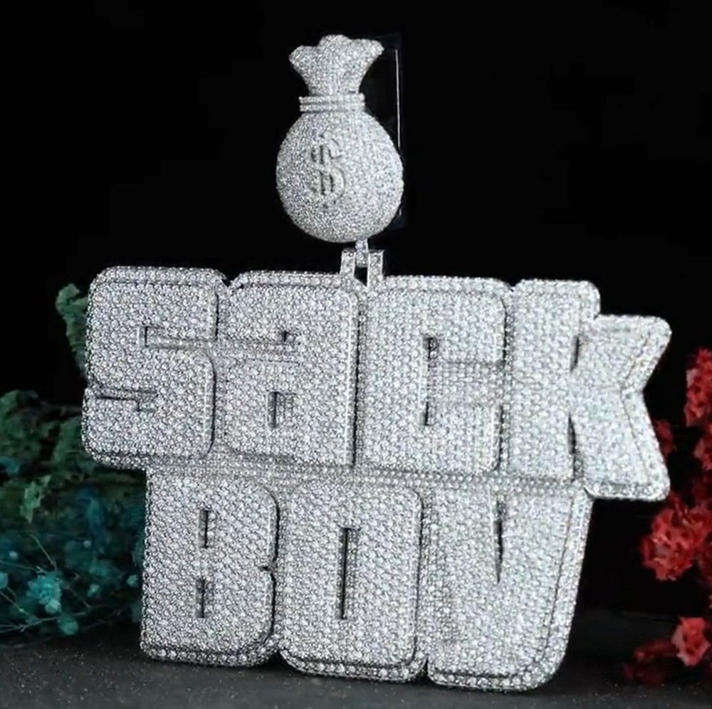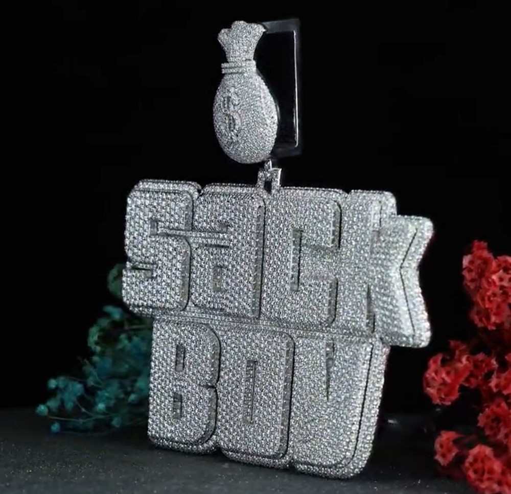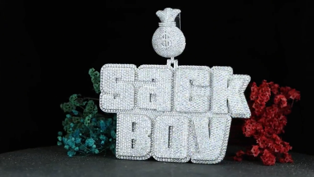 1.5-3.5 Inch Custom Men's Moissanite Hip Hop Name Pendant in White Gold