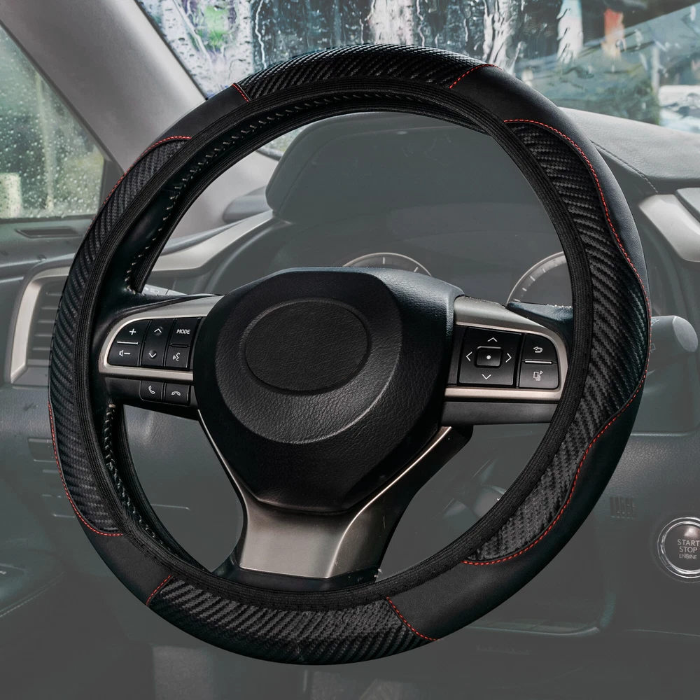 15''/38cm Universal Steering Wheel Cover Black Leather Anti slip Car Accessories Product Name: carbon fiber pattern steering wheel cover Material: Elastic Fabric + Pu Color:black & red Size diameter: 36-38.5cm / 14"-15.5” Specification: 1.Carbon fiber texture, fashion, generous, elegant. 2.Soft Elastic Fabric with the texture, good handle and very comfortable. 3.good elasticity and durable. 4.No distortion, No fade and No problem under extreme temperatures. Package included: 1 X Steering wheel cover Note: Due to lighting and shooting reasons, the color may be deviations, please understand We accept Paypal and majoy credit cards payment When you place an order, please choose a shipping method and pay for the order including the shipping fee within 48 hours. And please make sure your current address correct after your payment within 1-2 days! About Shipping 1. Receiving time = Processing time + Shipping time 2. Processing Time: Around 1-3 Days 3. Shipping Time: 15-26 Days By Air Mail 3-10 Working Days By Express We do not guarantee delivery time on all international shipments due to differences in customs clearing times in individual countries, which may affect how quickly your product is inspected! Important Notice >Transit Time Is Best Estimated But NOT Guaranteed As Transit Time Varies >Orders may be subject to import taxes, customs duties and fees levied by the destination country.Additional charges for customs clearance must be fulfilled by the recipient; We no control over these charges, nor can we predict what they may be. 100% Customer Satisfaction Is Our Top Priority For Any Reasons You Are Not Satisfied With The Products Within 30 Days Of Purchase, Return Or Exchange Can Be Issued, Customers Are Responsible For The Return Shipping Cost And Subsequent Replacement Shipping Cost For An Exchange Item. Replacement Item Will Be Processed And Shipped Upon Return And Inspection Of The Original Item. Return Items Must Be In Their Original Packaging And Unused Condition, Or They Will Be Rejected And Sent Back To You. Due To The Nature Of The Products We Sell, We Carefully Inspect All Packages Prior To Shipping. All Of Our Products Are Sold As Brand New, All Damaged Products Are Considered Damaged During Transit. If You Received A Damaged Or Broken Item, Please Save All Packaging Material And Paperwork And Contact Us Immediately So We Can Help You With The Damage Claim With The Shipping Carrier. No Claims Will Be Honored After 14 Days Upon Item Receive. Digital Photos Will Be Required For All Cases. All Products Come With A 60 Days Limited Warranty Against Manufacturer’s Defects. No Exchange Will Be Issued On Products That Have Been Damaged In Any Way. Warranty Does Not Applied To Improper Installation, Water / Fire Damage, Modification, Or Any Acts Of Nature . If you have any question or concern, please feel free to contact us via eBay massage directly, we will get back to you as soon as we are available ATTENTION : We do not answer any emails over the weekend Please send message to us.We will reply your message in 24 hours, Our working time: 9:00 AM-22:30 PM (GMT+ 08:00 Beijing) 1:00 AM -14:30 PM (GMT+ 00:00 London) 19:00 PM-08:30 AM (GMT- 06:00 USA/Canada) Why Choose us? 1. A tremendous variety of products-- With over 200,000 items in stock, we are one of the world's largest online stores in automotive aftermarket product sector. You'll have more choices than what you can ever imagine. What's more, we're updating with over 100 new arrivals per month! 2. Affordable prices -- we are offering the latest car parts and accessories for almost 20 years, we're always keeping up with the newest trends, while most importantly, making the prices as low as we can. 3. Free worldwide shipping -- Yep, you won't believe that you'll enjoy free worldwide shipping with us (unless stated otherwise),it's not a joke,but an absolute truth. 4. No-question refund and return-- Anything wrong issuing quality and breakage can be returned or refundable. Product Name: carbon fiber pattern steering wheel cover Material: Elastic Fabric + Pu Color:black & red Size diameter: 36-38.5cm / 14"-15.5” Specification: 1.Carbon fiber texture, fashion, generous, elegant. 2.Soft Elastic Fabric with the texture, good handle and very comfortable. 3.good elasticity and durable. 4.No distortion, No fade and No problem under extreme temperatures. Package included: 1 X Steering wheel cover Note: Due to lighting and shooting reasons, the color may be deviations, please understand PAYMENT We accept Paypal and majoy credit cards payment When you place an order, please choose a shipping method and pay for the order including the shipping fee within 48 hours. And please make sure your current address correct after your payment within 1-2 days! SHIPPING About Shipping 1. Receiving time = Processing time + Shipping time 2. Processing Time: Around 1-3 Days 3. Shipping Time: 15-26 Days By Air Mail 3-10 Working Days By Express We do not guarantee delivery time on all international shipments due to differences in customs clearing times in individual countries, which may affect how quickly your product is inspected! Important Notice >Transit Time Is Best Estimated But NOT Guaranteed As Transit Time Varies >Orders may be subject to import taxes, customs duties and fees levied by the destination country.Additional charges for customs clearance must be fulfilled by the recipient; We no control over these charges, nor can we predict what they may be. Terms of Sale 100% Customer Satisfaction Is Our Top Priority For Any Reasons You Are Not Satisfied With The Products Within 30 Days Of Purchase, Return Or Exchange Can Be Issued, Customers Are Responsible For The Return Shipping Cost And Subsequent Replacement Shipping Cost For An Exchange Item. Replacement Item Will Be Processed And Shipped Upon Return And Inspection Of The Original Item. Return Items Must Be In Their Original Packaging And Unused Condition, Or They Will Be Rejected And Sent Back To