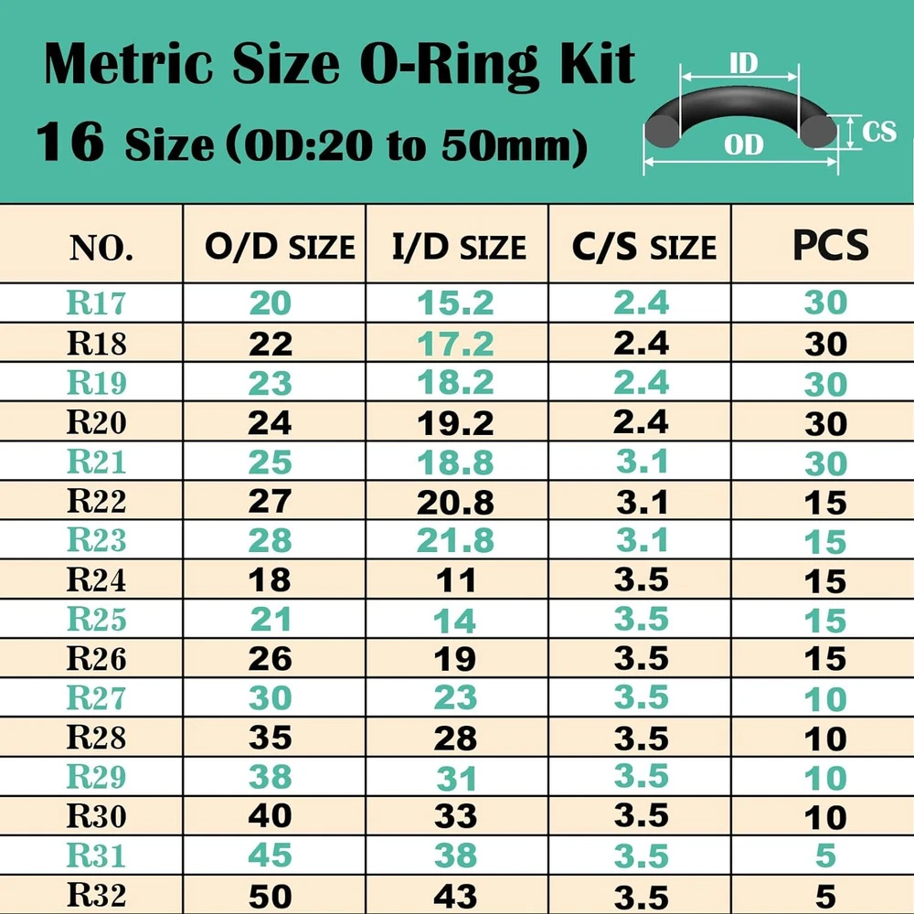 Multiple sizes:O-ring assortment kit contains standard 32 metric rubber O-rings with O-rings from 4 to 50 mm O.D. and 1 to 3.5 mm thick.Also comes with a 4-piece precision pick and hook set, including 1 pc. Full Hook; 1 pc. 45 degree pick; 1 pc. 90 degree pick; 1 pc. Straight picks. Can meet almost all your needs High quality material: O-ring bushings are made of commercial grade NBR material with a working temperature range of -40℉/-40℃ to 248℉/120℃. With excellent resistance to high and low temperatures, it is very suitable for thermal machinery, automotive, and faucet pipe sealing repair Wide applications: O-ring classification is very suitable for faucets, high-pressure washers, motorcycles, boats, car engines, pumps, solenoid valves, meters, sensors, mechanical bearings, pressure pipes and other accessories for sealing DIY repairs, Hook and Pick Set for clamps, wires, O-rings, gaskets and other precision parts Easy to use and store: Various o-ring kits, 32 sizes of o-rings are placed in order in a sturdy plastic storage box, each size comes with a detailed label paper, very easy to use, o-rings are stored in order of size, easy to retrieve and store Quality service: XBVV always provides excellent customer service so you can buy with confidence. If you have any questions about Metric O Ring Assortment Kits, please let us know and we will be happy to assist you Product Description XBVV has A Great Team of Carefully Selected Quality and Assured Products