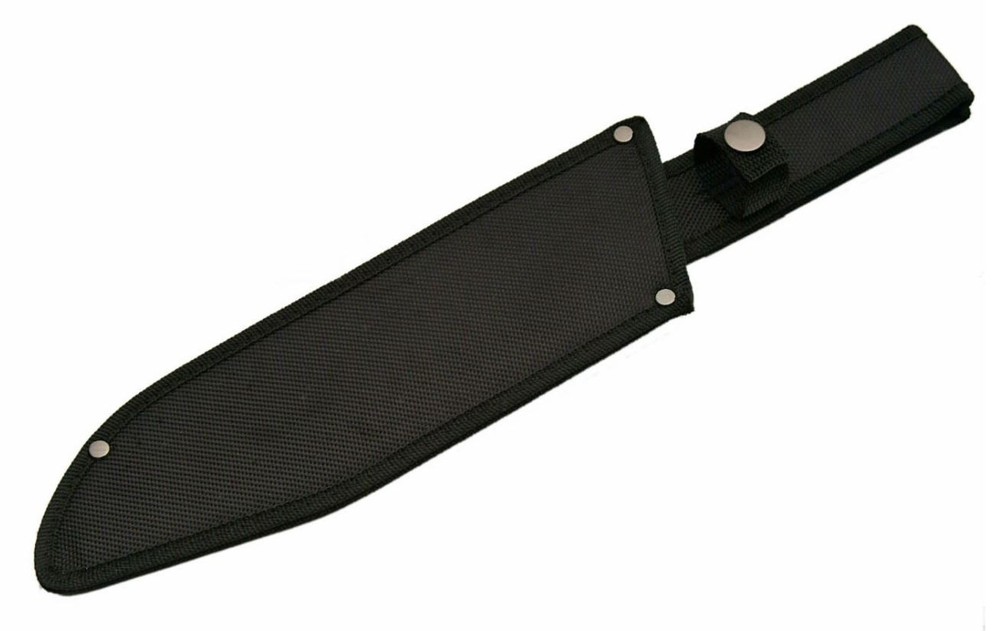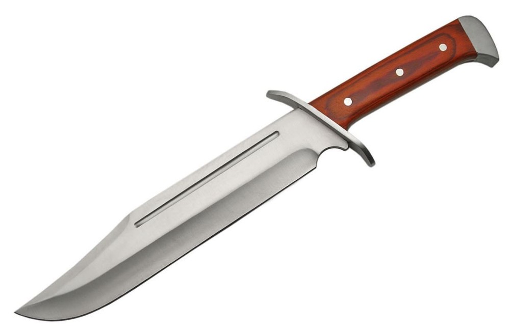 Embrace rugged tradition with this 15.5" Classic Bowie Knife featuring a 10" stainless steel blade and durable full tang construction . The rich cherrywood handle , accented by stainless steel pins, pommel, and guard , delivers both style and strength. A black nylon belt sheath is included for carry and storage. Features: Overall Length: 15.5" Blade Length: 10" stainless steel Full Tang Cherrywood Handle Stainless Steel Pommel, Guard & Pins Includes Black Nylon Sheath