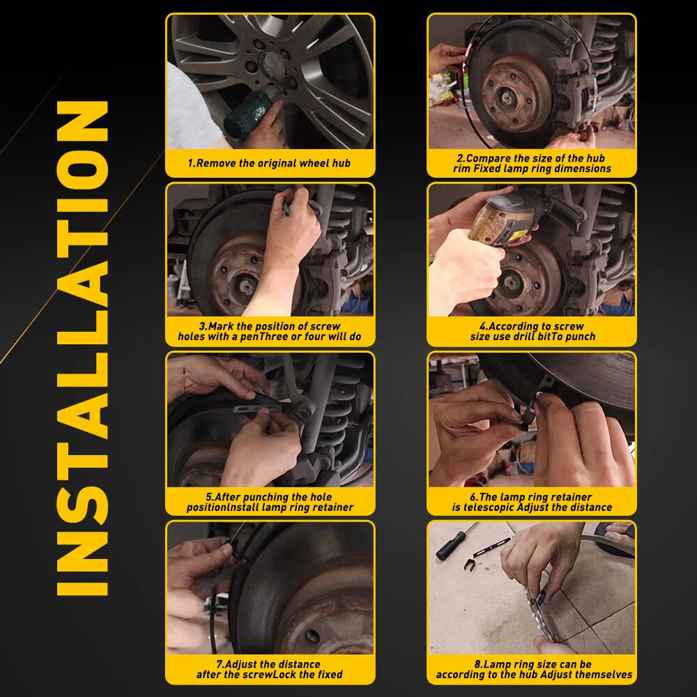 Fit For: Perfectly fit for all 12V vehicles and devices : 1, Wheels diameter have to be 18 inch or larger 2, Brake rotors have to be 13.5 inch or smaller 3, MUST be make sure all the wiring size suitable for your car before ordering (Professinal installation are suggested!!!) Specification: Control mode: APP+ remote control Control range: 1-10 meters Color inclued: red,green,blue,white,yellow,ice blue etc. Product length: 1.strip light: 48 inch (120cm) 2.Line length: 157.4 inch (4m)*2/94.5 inch (2.4m)*2. LED type: 5050 SMD LED quantity: 60LED per piece 15.5" LED Wheel Ring Rim Lights RGB Color Chasing Brake&Turn Signal Bluetooth US Fit For: Perfectly fit for all 12V vehicles and devices : 1, Wheels diameter have to be 18 inch or larger 2, Brake rotors have to be 13.5 inch or smaller 3, MUST be make sure all the wiring size suitable for your car before ordering (Professinal installation are suggested!!!) Specification: Control mode: APP+ remote control Control range: 1-10 meters Color inclued: red,green,blue,white,yellow,ice blue etc. Product length: 1.strip light: 48 inch (120cm) 2.Line length: 157.4 inch (4m)*2/94.5 inch (2.4m)*2. LED type: 5050 SMD LED quantity: 60LED per piece Waterproof rating: IP68 Service life: 50000h+ Features: *Multiple Functions: Our lights have three functions: Brake Light, Turn signal light, Reversing light. *Double Control Modes: Multiple Modes to meet all your needs (Remote control+ Bluetooth APP control). *High quality: IP68 Waterproof & Rock Solid Construction, Die-cast Aluminum Housing, Shockproof / Dust-Proof / Rust-Proof. *RGB MULTI-COLORS & Cool Mode 1. Different features give you the most personalized experience, including changing the mode and speed of the light and lighting colors to follow your musical rhythm or external noise/sound changes. 2. 16 million colors to you DIY different lighting scenarios. 3. 23 modes: burst flash, gradual change,jump change, Speed&Brightness adjustment etc. *Simple operation: 1, Scan the QR Code on the controller box to download the app (over Andriod 4.3 or IOS phone). 2, Use APP to change the colors and the flash modes afer connection. *Wire Connection: White-Brake Light Black-Neagtive Wire Blue-Turn light Yellow-Turn light Red-Running light Package included: 4 pcs light strips 4 pcs hub steel rings 1 pcs mounting kit 1 pcs remote controller Item Specifics Features Powered by high intensity LED chips Waterproof Dustproof App Controllable Features 3 Smaller size control box save more space Voltage 12Volt Performance Part Yes Lighting Technology LED Waterproof rating IP68 Suitable For Wheel Light Lumens 28800LM Material Aluminum ABS To Fit LED Wheel Rings Rim Light Universal Fitment Yes Features 5 Bluetooth control and DIY different lighting scenarios Bulb Color RGB Multi-color LEDs (Color change) Shape Round Color Temperature RGB(1000-7000K) Light Color Multicolor Number of Bulbs 4 Placement on Vehicle Wheel Wattage 288W Housing Color Black Features 4 trun signal and brake signal function Features 2 Waterproof, dustproof, rustproof, shockproof Manufacturer Part Number RGB LED wheel Rim lights (Bluetooth) Brand Unbranded LED type 5050 SMD Mounting Style Bracket Mount Surface Finish IP68 Waterproof Strips and Aluminum rings Bulb Life Hours Up to 5,000 Hours Type Wheel Ring Rim Lights Items Included Bracket Waterproof rating IP68 Material Aluminum ABS FAQ ♥ If you have a decoding problem or any other problems, please contact us first, we will help you with it. We will reply you within 24 hours in working days. I'm a new seller, thanks a lot for your trust and convince! I will serve you with all my heart. ♥ Q1: Will this bulb fit my vehicle? A: We can match almost any vehicle to one of our bulb sizes. eBay only lets us include some vehicle fitments per listing, but if your vehicle does not show up on the compatibility table at the top of our listings, welcome you to contact us for free consulation before purchasing a product. Q2: My item has not arrived, what's taking so long? A: Sometimes items take longer than expected, especially if it’s going far or to rural area. Check with your post office to see if your item has been held up. Sometimes Royal Mail will not update a tracking number until it has arrived at its destination. If your item still don't arrive after a few days, let us know so we can double check for you and help solve it asap. Q3: My bulbs won't fit, help! A: Special bulb holder may be required. See if you can take the holder from the stock bulb. If not, let us know. The bulb size may be wrong, double check the item you received with the item you ordered. Do you have an aftermarket lighting housing? These may not be perfectly fitted for aftermarket bulbs and will require some manual modifications. Q4: Neither side lighting up? Both sides flicker, hyper flash, or work inconsistantly. A:Check the light fuses, and then check the ballast plugs to insure correct installation. If this doesn't work, there may be a voltage problem with the vehicle. You probably just need a relay or capacitor. Even though some bulbs are builtin resistors, they may still need a decoder. Pay & Ship (1). We gladly accepts payment via PayPal, We will ship your item(s) within 24 hours. (2). Before payment, please keep the consistency of Paypal address and ebay address. (3). Quantity orders are welcome! Returns (1). We offer 60 days free return policy. Please contact us within 60 days from the date you receive your order if you have any issues with the product or want return. Refund will be send after we got your resend package. (2). All returned items should be in the original packaging , return tracking information should be provided . Contact Us (1).Negative feedback will not help resolve any problems you have, please contact us via eBay messages before leaving negative feedback , our customer service will make best effort to help you with the issues. (2).We maintain high standards of excellenceand strive for 100% customer satisf