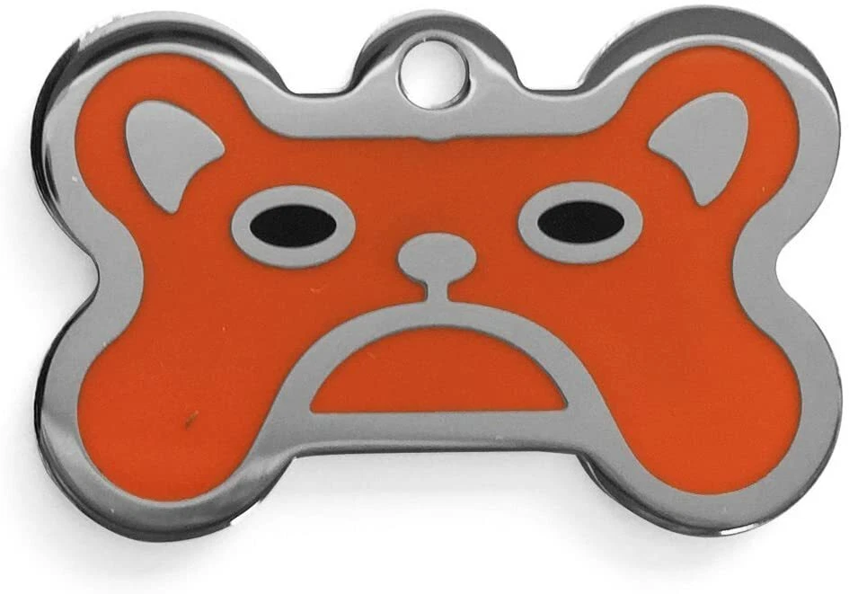 Clearance Below Wholesale Price MyIDDog Stainless Steel Dog Tag Bone Bulldog Face with no Engraving - 155 Pack Clearance Sale This is a clearance lot of 155 pet tags with assorted colors Bulldog Face. Get these pet tags in bulk and get a great discount. CLEARANCE: These are sold as is, brand new and Unused. -- These are non refundable. Sale is final. The standard wholesale price for all these pet tags is $555+. While Retail value sole individually starts around $6 -$8 each, But we are offering clearance below wholesale price. The price we are offering for these 155 pack pet tags is $243.47 with free shipping (Domestic). About Pet Tags: Pet Tags are Sand Blasted on Backside to Enhance Laser Engraver and Are Not Suitable for Diamond Edge Engraving This fun dog ID tag is decorated on the front with a cute looking bulldog face. These stainless steel pet IDs are perfectly designed for durability and fun for your furry friend. Burton, our shop puppy and hair disperser, strongly endorses the pet tags. We use 316L stainless steel for all of our pet identification tags. This type of steel is waterproof and pet-proof (rain, mud, snow, dirt and hair will not affect this pet ID). This dog ID is far more than a hair above other dog tags because it is extremely light and durable. The enamel come with a lifetime warranty, so this will be the last dog tag you will ever need, unless your four legged friend would like a new style later on down the road. SPECIFICATIONS: ✓ Condition : Brand New. Unused ✓ Material : 316L Stainless Steel ( Waterproof and Pet proof) ✓ Weight : Light Weight ✓ Type : Pet Tags ✓ Color : Yellow, Pink, Purple and Orange with Bulldog face ✓ Size Available : Large - 1.5in x 1in (85 Units) & Small - 1.18in x 0.79in (70 Units) ✓ Pack : 155