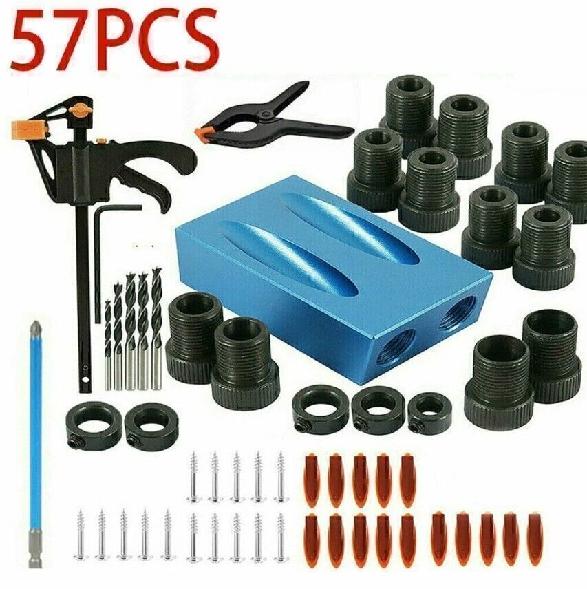15/57Pcs 15°Pocket Hole Jig Kit Tool System Woodworking Wood Joint Tool
