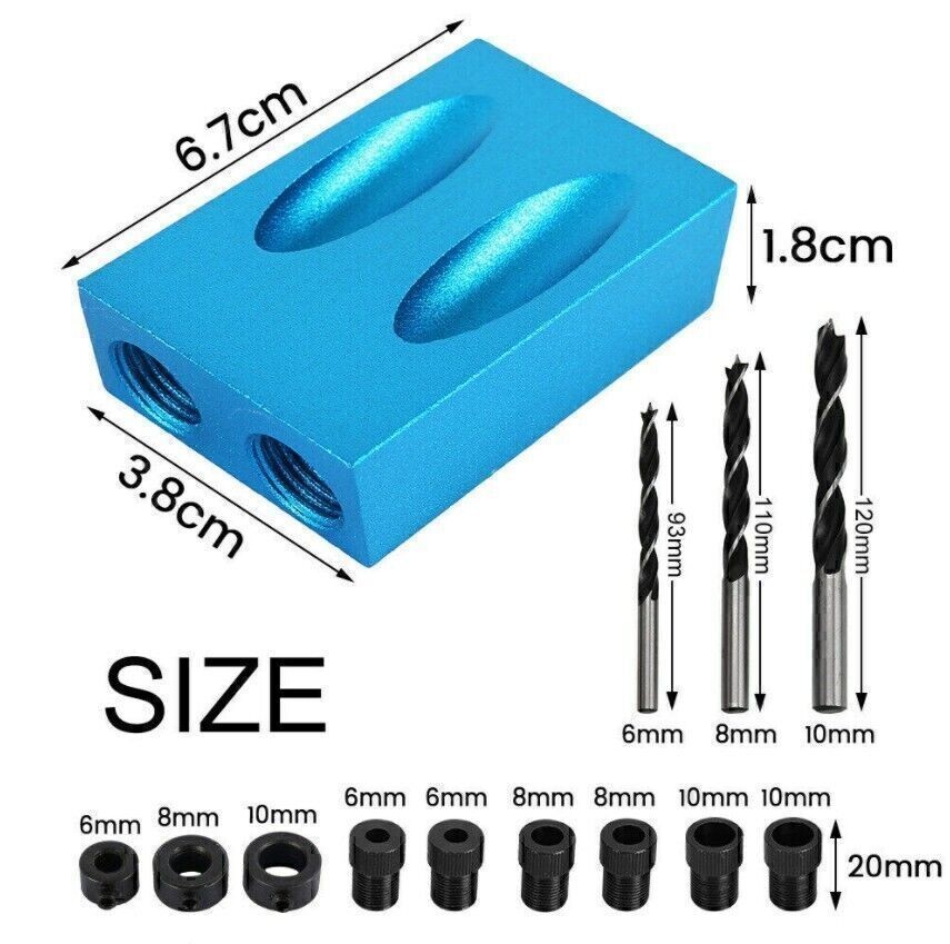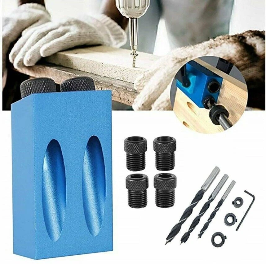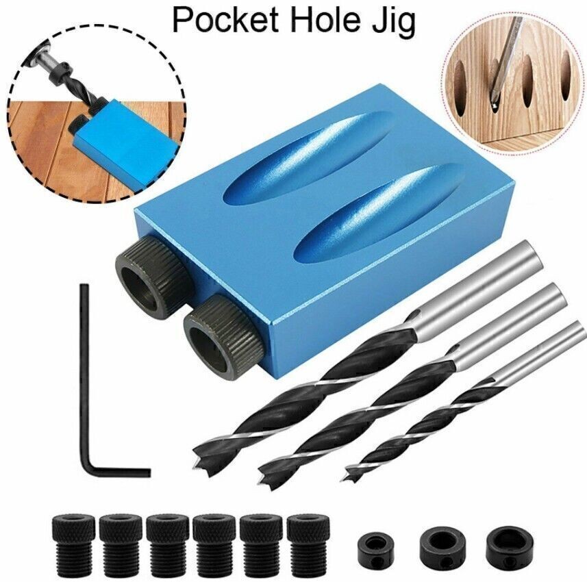 Product Description If you have any questions, please contact customer service first, do not open disputes easily, thank you! 15Pcs Pocket Hole Jig Kit Specification: Drill Material: Carbon Steel Ring Material: Carbon Steel Positioner Material: Aluminum Main color: Blue + Black Positioner Size: Approx. 67 * 38 * 18 cm Drill diameter: 6 mm, 8 mm, 10 mm Stopper Size: 6mm, 8mm, 10mm Sleeve Size: 6 mm, 8 mm, 10 mm Angle: 15 degrees Quantity: 15 Pcs/Set 57PCS Pocket Hole Jig Kit Feature: HARD TOOLS: The pocket hole drill guide set is an amazing woodworking jig and an exceptionally handy tool collection. ALUMINUM ALLOY: Drill guide is made of high quality aluminum alloy for durability and long service lifetime. EASY TO INSTALL: Come with simple structure, the inclined hole locator is easy to use and install, suitable for jointing wood boards. UNLIMITED APPLICATION: This jig has unlimited application, such as creating flush, fastening picture frames. Package: 1 x Drill guide 3 x Drills 3 x Stoppers 6 x Sleeves 1 x Allen key 1 x F-clip Features: - HARD TOOLS: The pocket hole drill guide set is an amazing woodworking jig and an exceptionally handy tool collection. - ALUMINUM ALLOY: Drill guide is made of high quality aluminum alloy for durability and long service lifetime. - EASY TO INSTALL: Come with simple structure, the inclined hole locator is easy to use and install, suitable for jointing wood boards. - UNLIMITED APPLICATION: This jig has unlimited application, such as creating flush, fastening picture frames. - Easy to use-slant holes are drilled easily and quickly to hide the screws in wooden furniture. DIY woodworking tools and 2-way oblique holes to achieve precise screw connection. Specification: - Product Type: Pocket Hole Jig - Material: Aluminum - Main colour: Blue + Black - Angle: 15 degrees - Quantity: 57Pcs/Set Package Included: - 1pc Pocket hole jig - 2pcs Woodworking Clamps - 1pc Blue Stick - 12pcs Large Screws - 5pcs Limit Rings - 5pcs Drill Bits - 1pc Inner Hexagon - 15pcs Screws - 15pcs Corks About Us We accept all payments authorized by eBay. About Us We accept all payments authorized by eBay. powered by