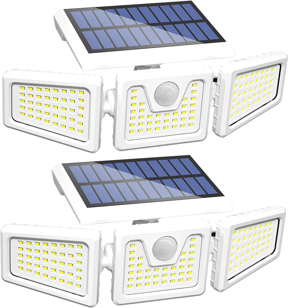156 LED Solar Motion Lights Outdoor 2 Pack, 3 Heads Solar Security Lights with M