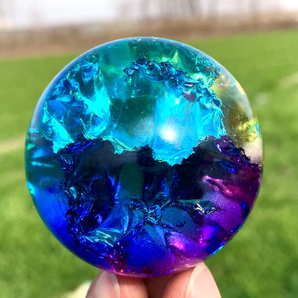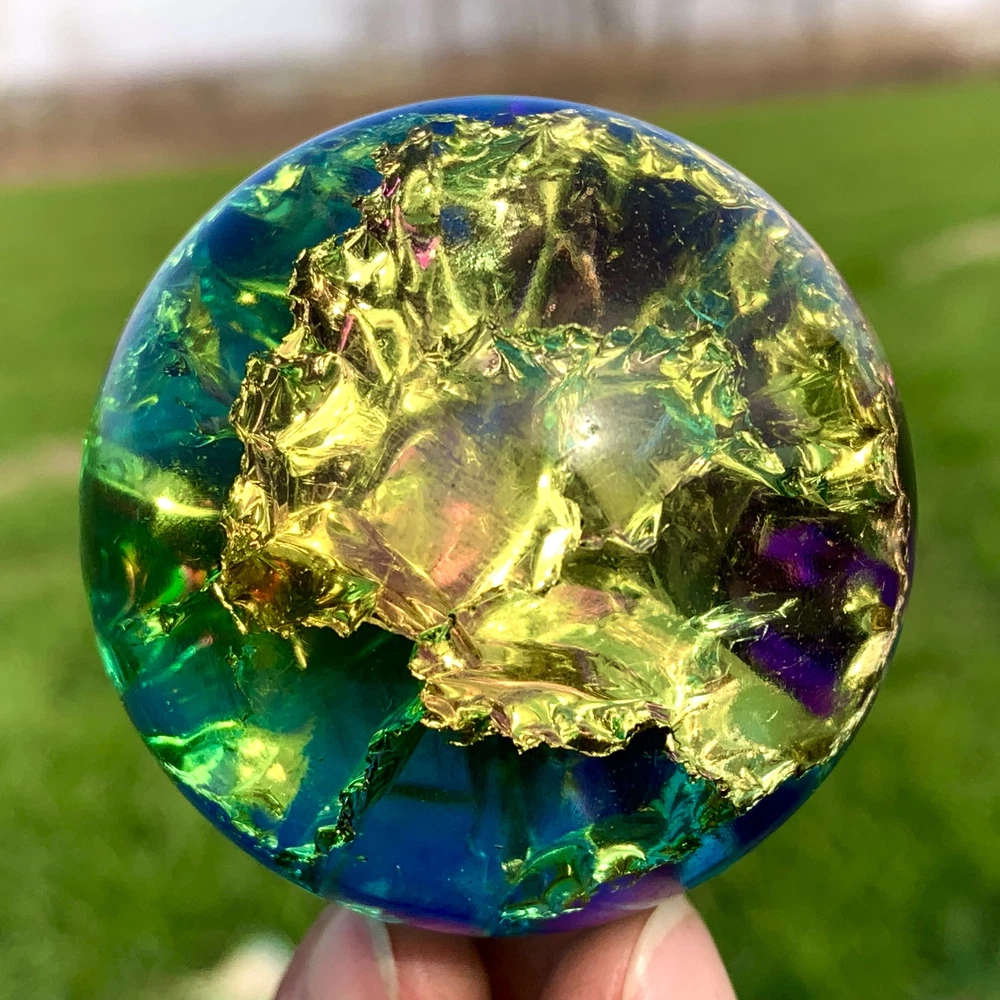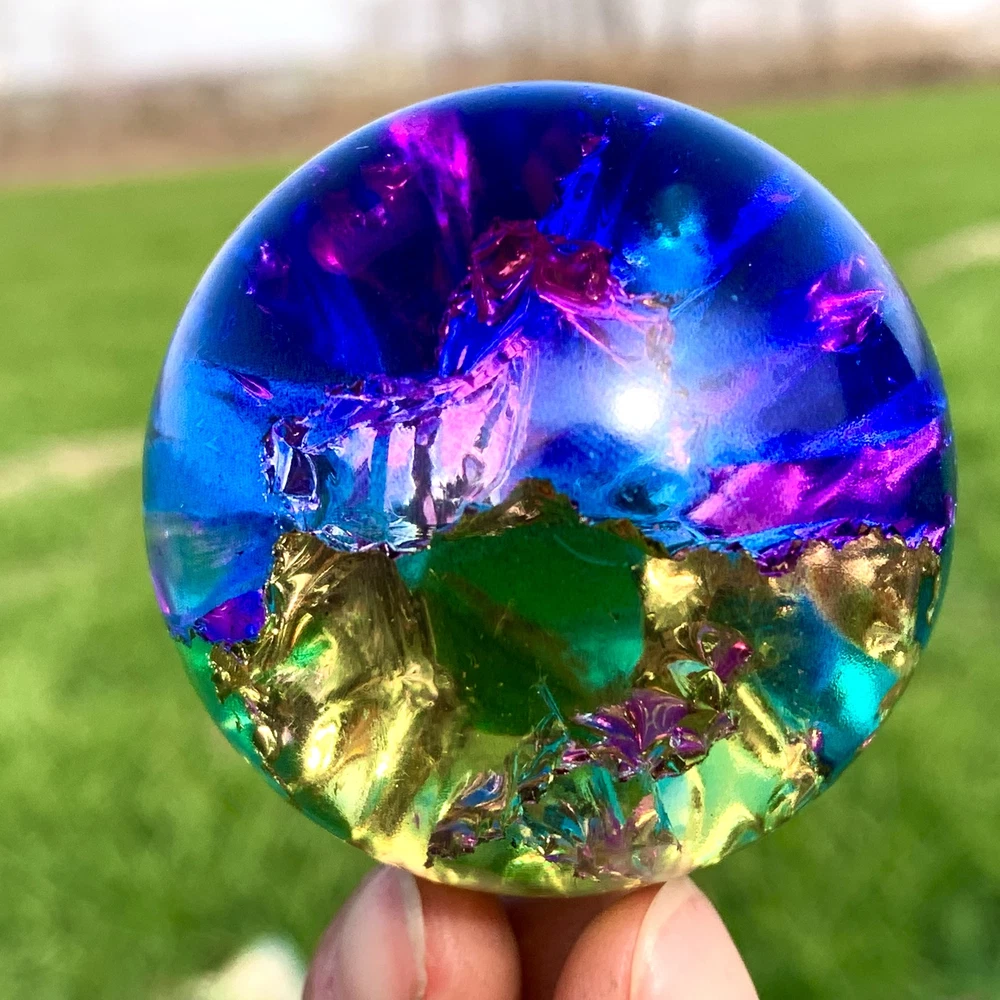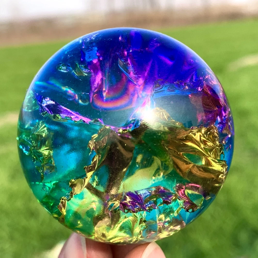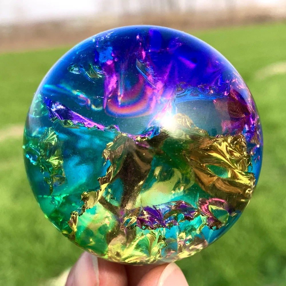 156G Natural Titanium Rainbow Quartz sphere Crystal ball Healing
