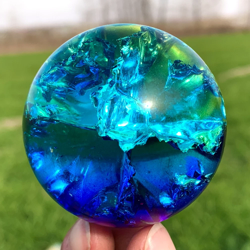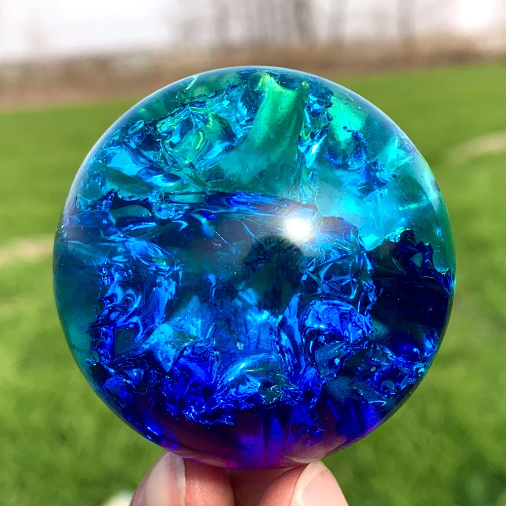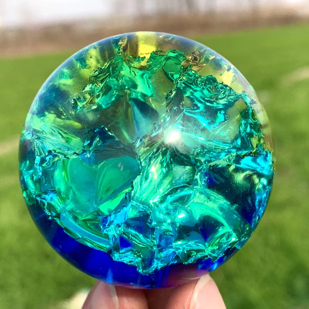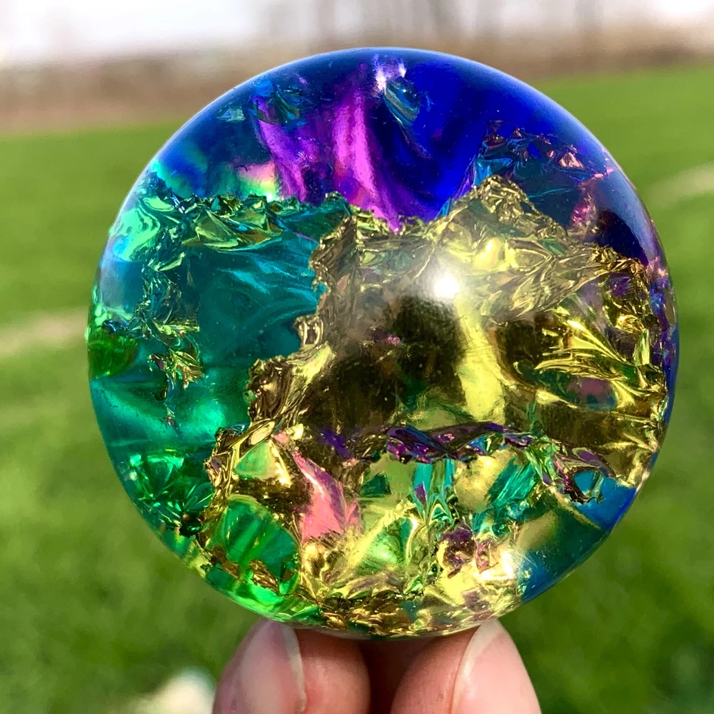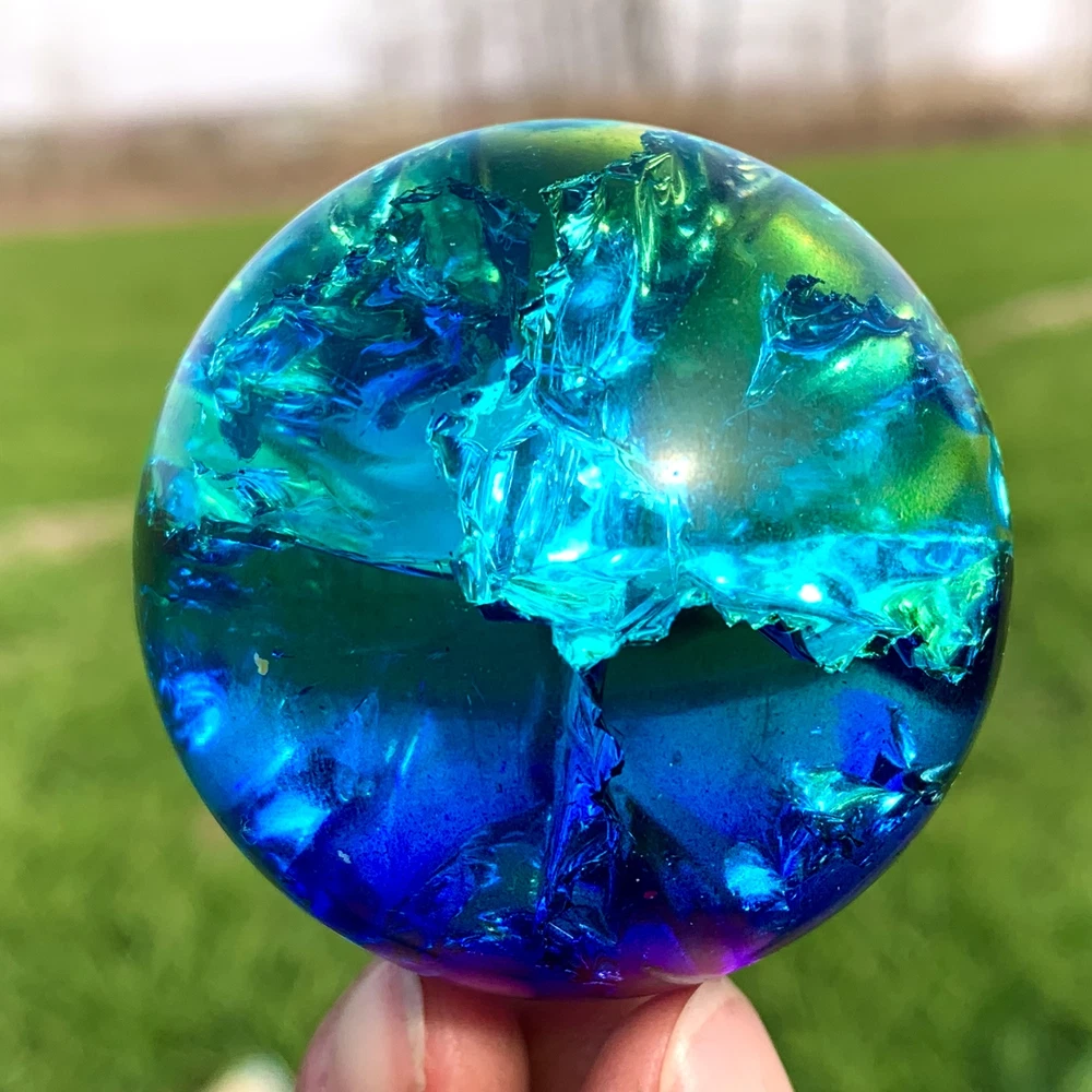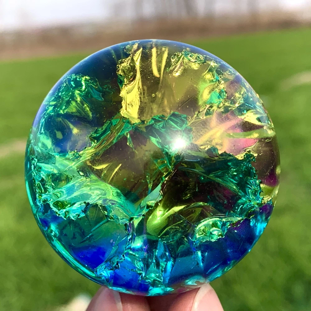 156G Natural Titanium Rainbow Quartz sphere Crystal ball Healing